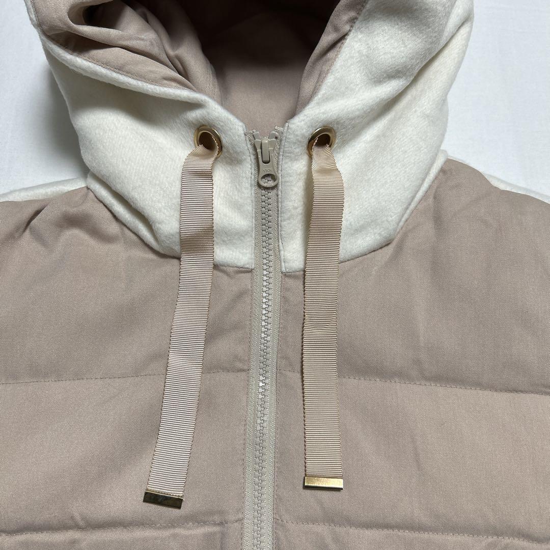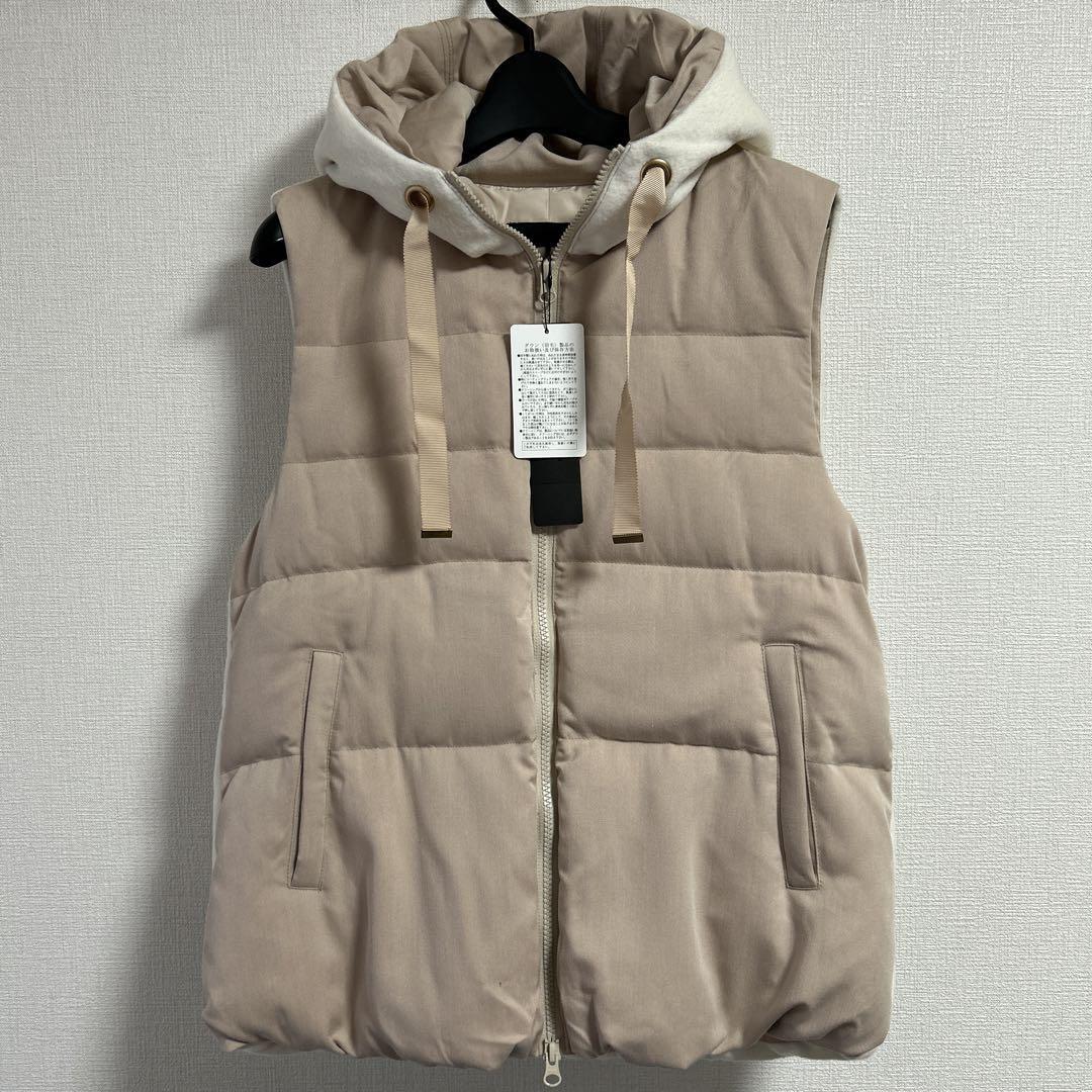フード付きのベージュダウンベスト、フリース裏地で保温性抜群。 - 色: ピンクベージュ - デザイン: フード付き、ダブルジップ - 素材: 表地ポリエステル80、毛20%他 裏地ポリエステル100% 詰め物ダウン50%、フェザー50% - ポケット: 前面にポケットあり 着丈67cm、身幅51cm、肩幅40cm 新品タグ付きですが、自宅保管しており、前に1箇所傷があります。(写真参照) 定価22,000円税込 ご覧いただきありがとうございます。