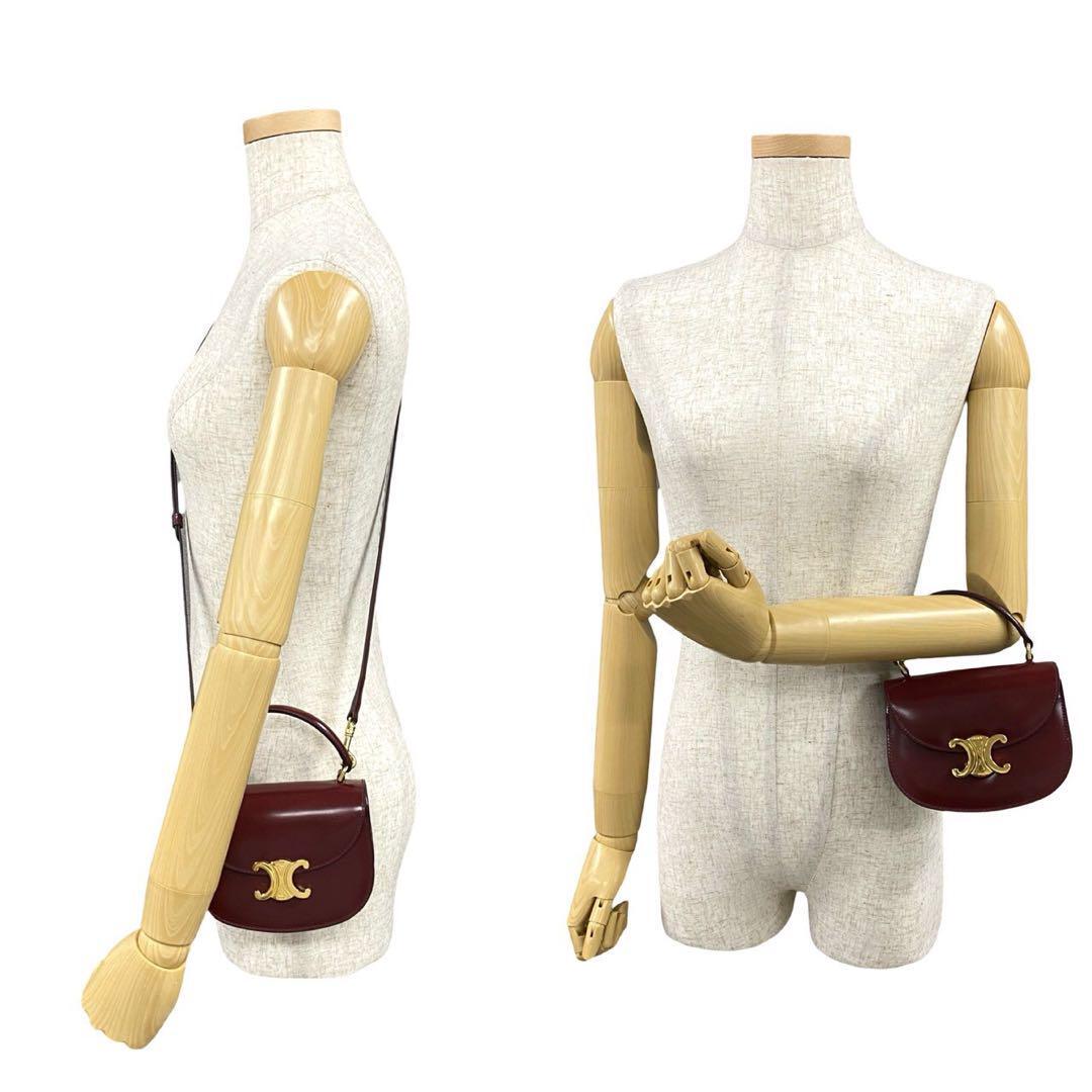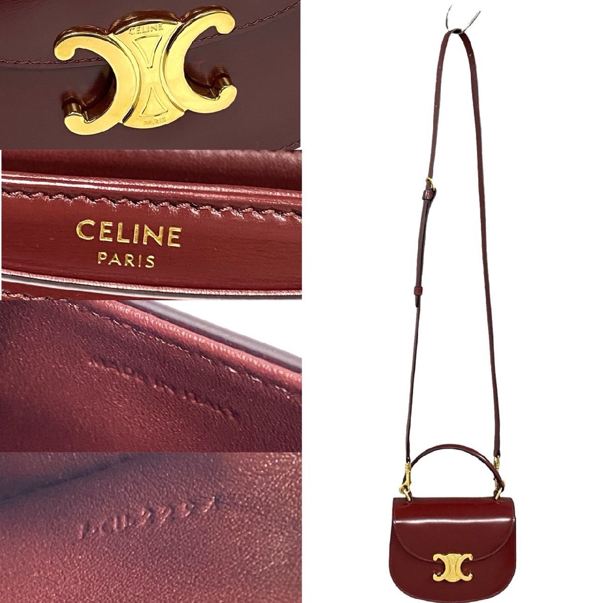ほぼ 未使用 箱 袋付 CELINE セリーヌ ミニ ブザス クレア トリオンフ ロゴ 金具 カーフ レザー 2way ショルダーバッグ ハンドバッグ 09848