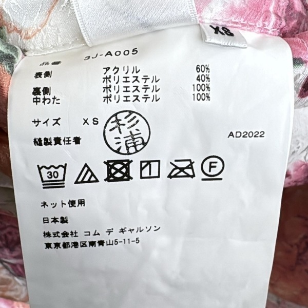 コムデギャルソンノワールケイニノミヤ COMMEdesGARCONS NoirKeiNinomiya サイズXS 3J-A005 - 白×ピンク×マルチ レディース AD2022 美品