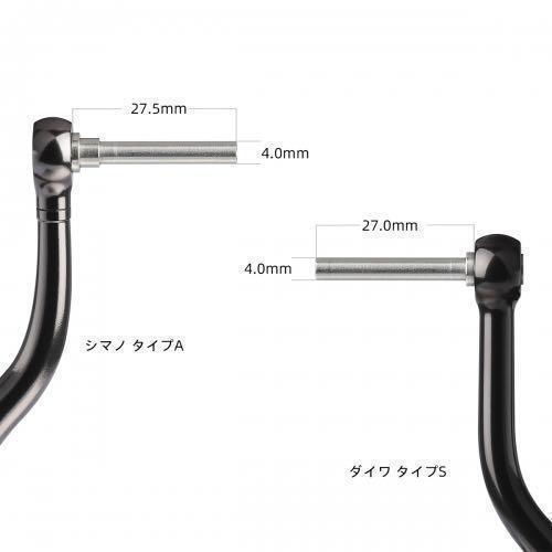 SHIMANO A type(シマノの汎用スピニングリール、ベイトリールのほとんど全て)、DAIWA S type(ダイワの汎用スピニングリール、ベイトリールのほとんど全て)に適合いたします。