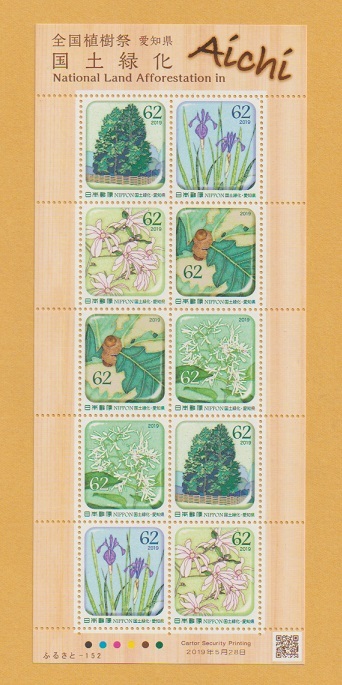 ○【記念切手】ふるさと切手《62円》 国土緑化:愛知県 切手シート 2019年  未使用