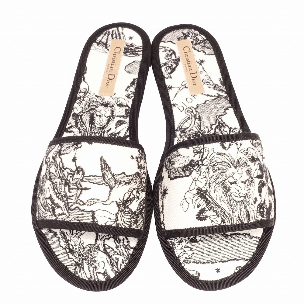 【Christian Dior クリスチャンディオール シェモワ ミュール サンダル フラット ルームシューズ 39 24.5cm 白黒 レディース】 | |