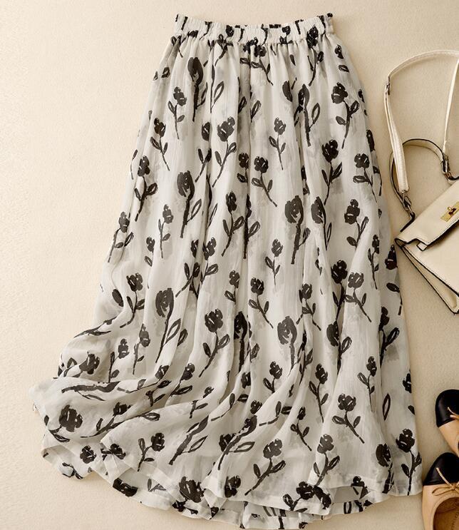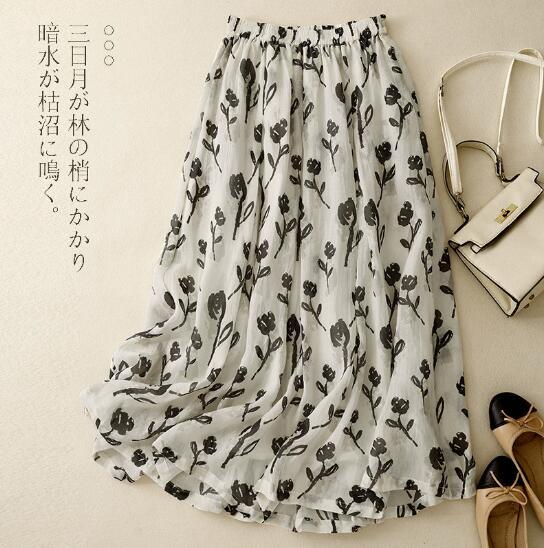 人気品人気推薦小花柄 ロングスカート フレアスカート マキシスカート ボトムス 涼しい 女子会 薄手 きれいめ Aラインスカート L