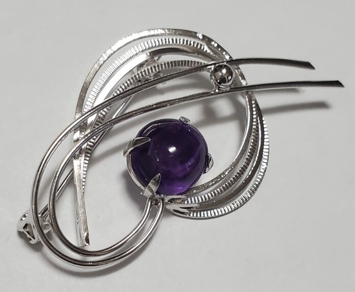 天然石 アメジスト カラーストーン ブローチ レディース アクセサリー 8,5g 美品