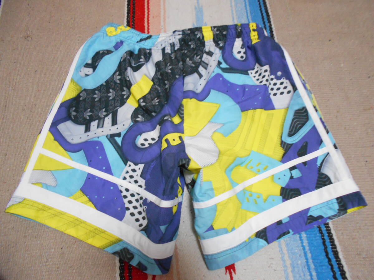 長すぎないレングスの絶妙なシルエットライン、実用的な サイドポケット付き、頑丈な縫製、サイドトリプルストライプとホワイトテープ縫い付け補強、インナーにサポーター張り、「SUPER STAR」 のクレイジーミックスグラフィックス、トレフォイルADIDASエンブレム 等等...ディテールデザインまで極めて良いテイスト