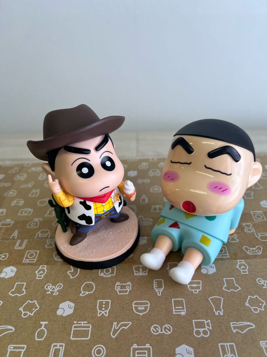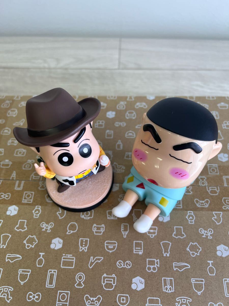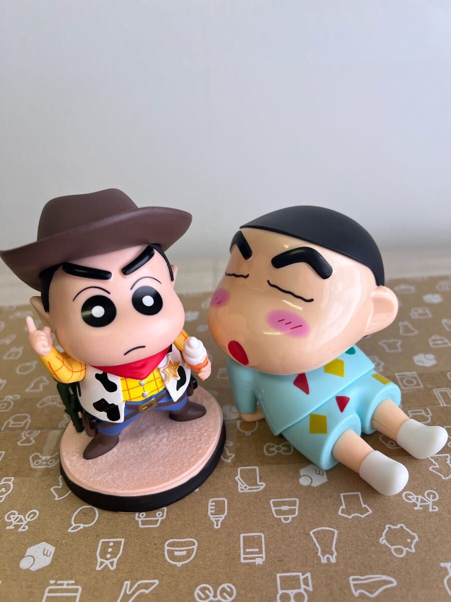 スマホスタンドのしんちゃんとカウボーイなしんちゃんのフィギュア2体セット。