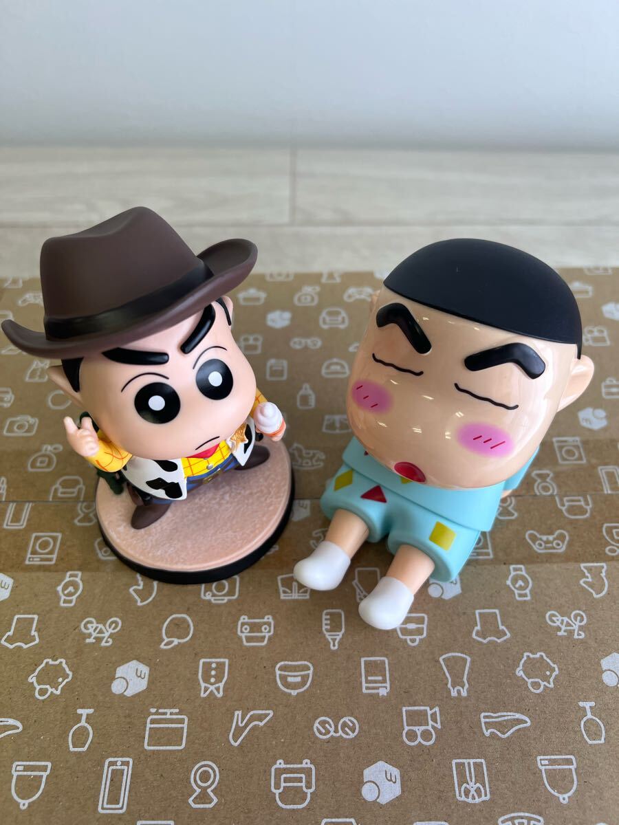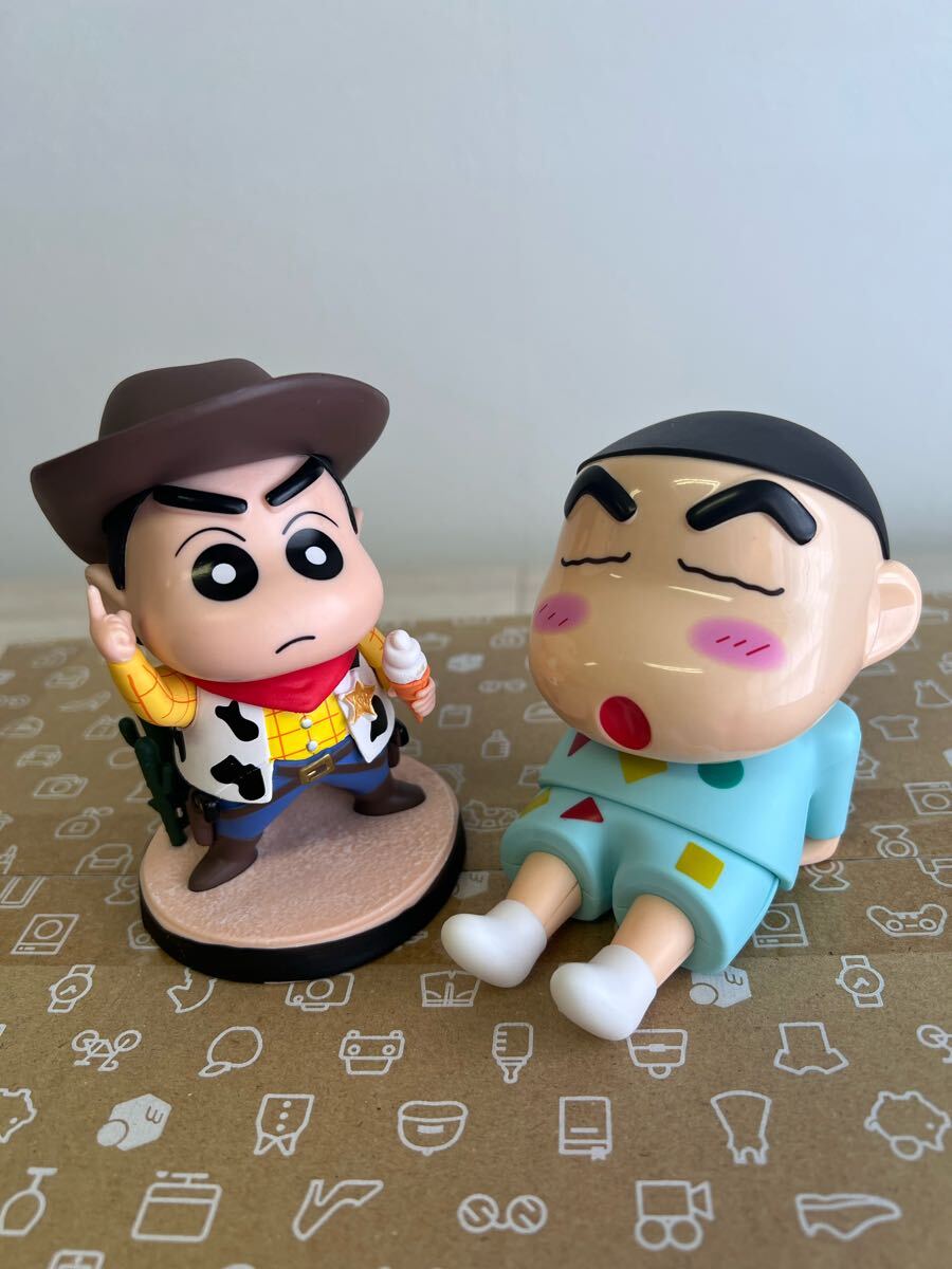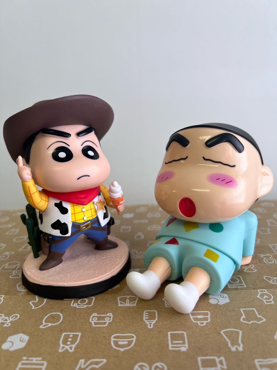 スマホスタンドのしんちゃんとカウボーイなしんちゃんのフィギュア2体セット。