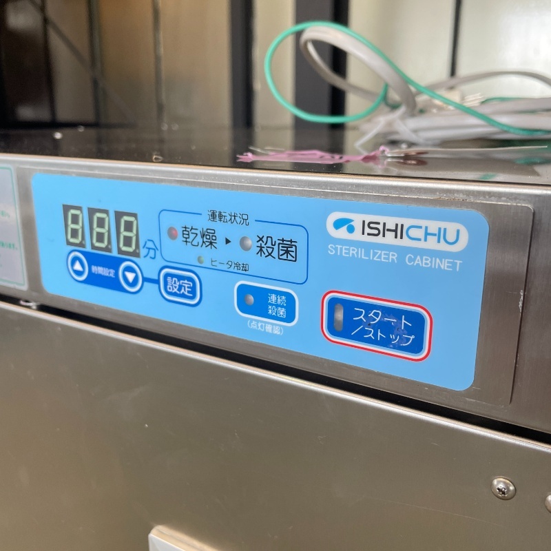 特記事項 | ・最大寸法:包丁 柄155mm刃渡290mm、まな板 645×365×43mm ・殺菌灯出力15W×3本、ヒーター出力450W ※使用に伴うキズあり |
