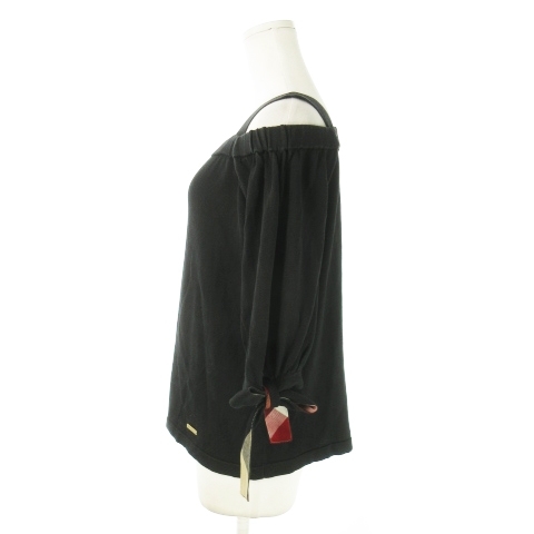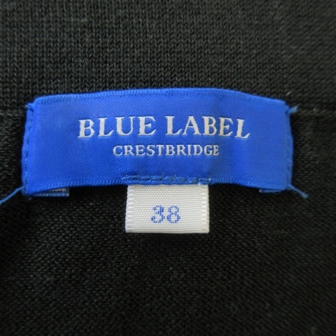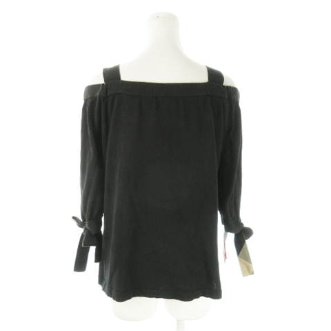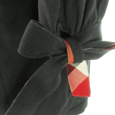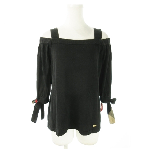 ブルーレーベルクレストブリッジ BLUE LABEL CRESTBRIDGE カットソー オフショルダー 七分袖 ストレッチ リボン チェック ロゴ 38 M 黒