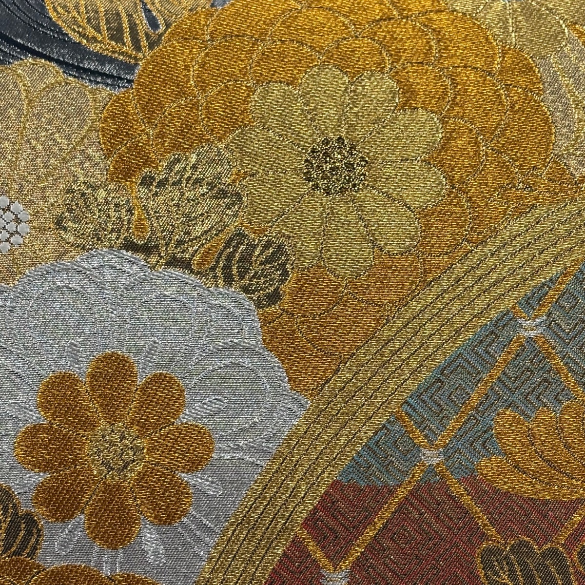 | 袋帯 美品 秀品 菊 光悦垣 金銀糸 箔 銀色 六通 正絹 【中古】 |