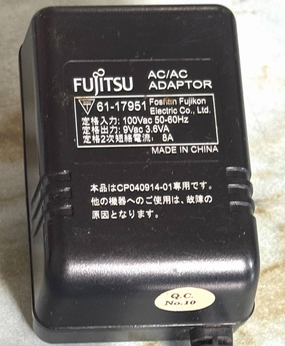 ※9V交流出力(AC-AC)電源アダプタ富士通製/入力AC100V/出力 AC9V-400mA / 簡易動作確認済