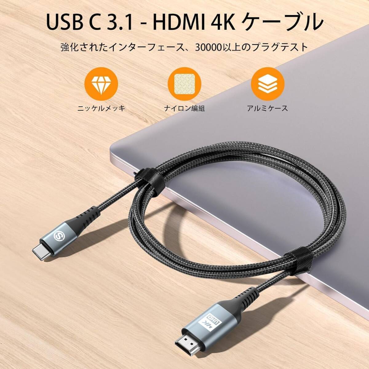 HDMI Type-C 変換ケーブル 2M, 4K USB-C HDMIケーブル Thunderbolt3対応 ナイロン編み 映像出力 携帯画面をテレビに映す タイプC HDMI 変換けーぶる iPhone15/iPhone16 Pro Max,MacBook/iPad Pro/iMac/Surface/Dell/Samsung Galaxy S23 S22 S21 S20 等対応-灰