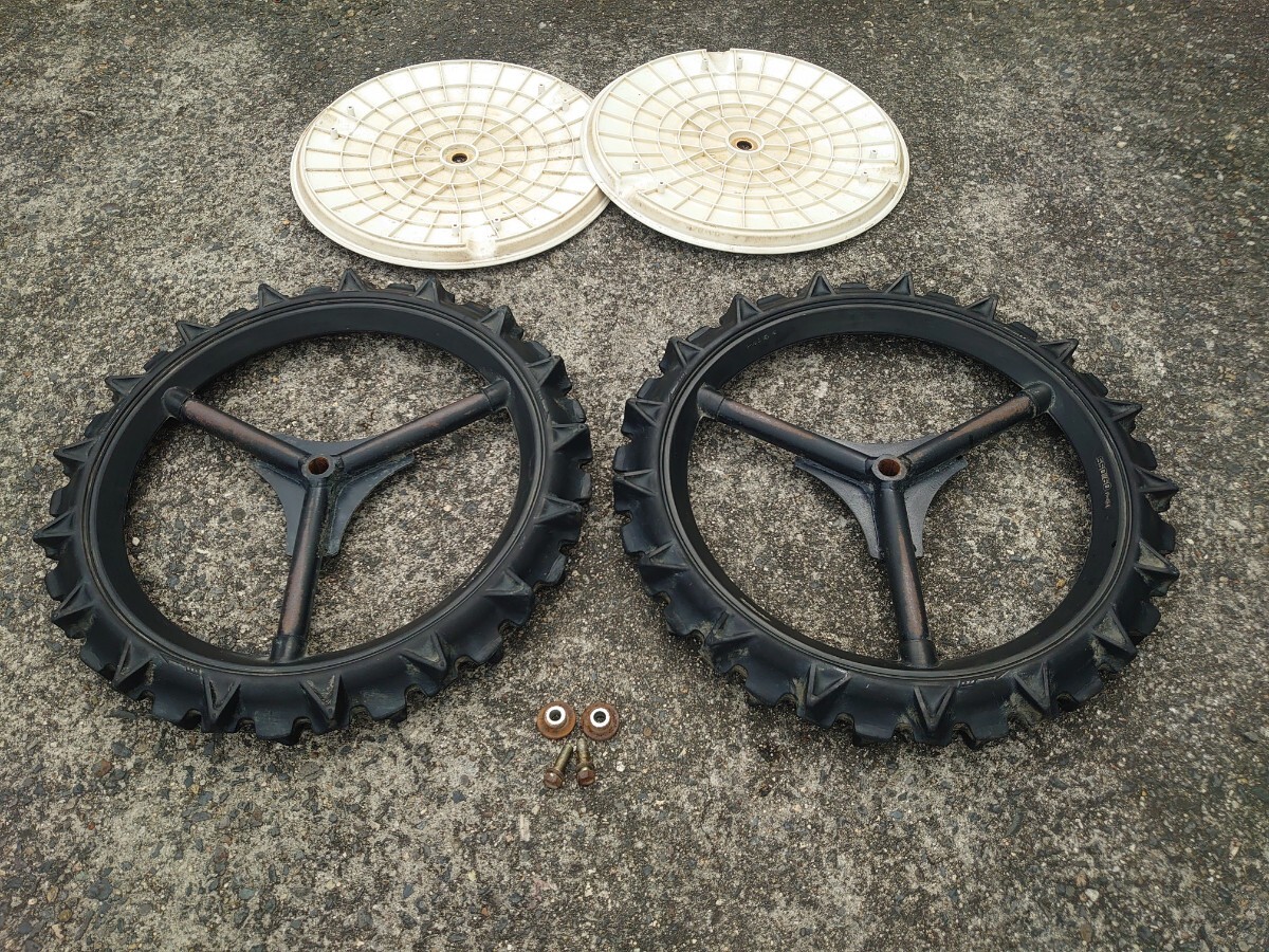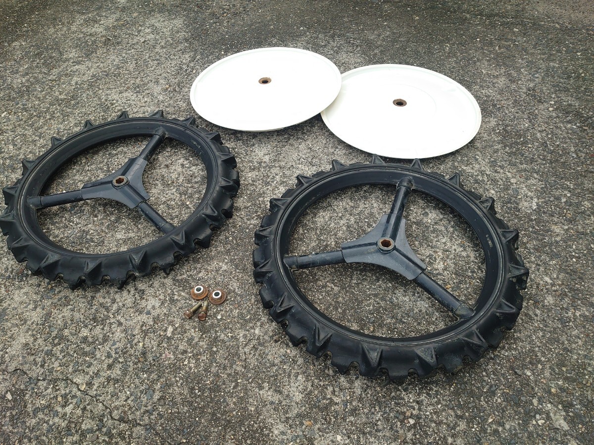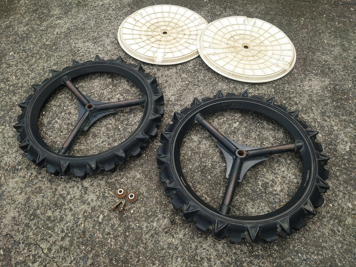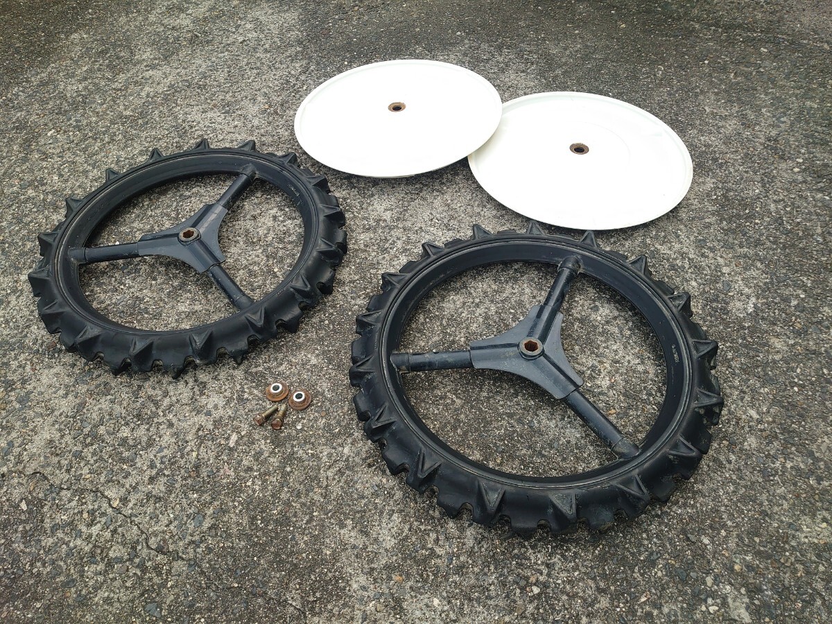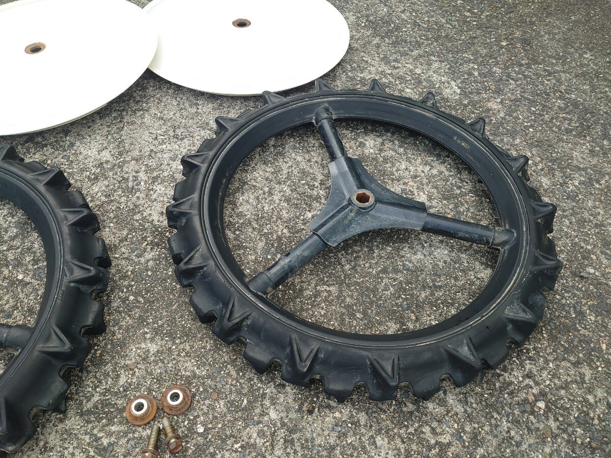 クボタの田植え機 SPU45P POP WELSTAR から取り外したノーパンクフロントタイヤ ホイールカバー付き 左右セットの出品です