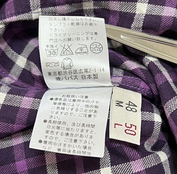 Papas パパス 綿 × ポリウレタン チェック BD ボタンダウン 長袖 シャツです。