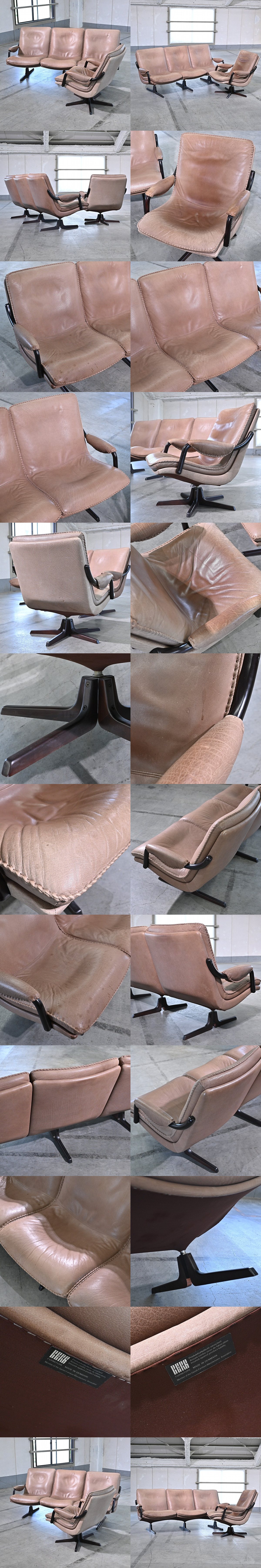 北欧デンマーク「BERG furniture」三人掛けソファ & 一人掛けソファ 本革 トリプル シングル ミッドセンチュリー ベルグファニチャー
