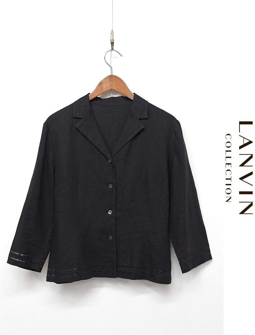 Q341/LANVIN COLLECTION ジャケット リネン 羽織り 40 L 黒 春夏秋