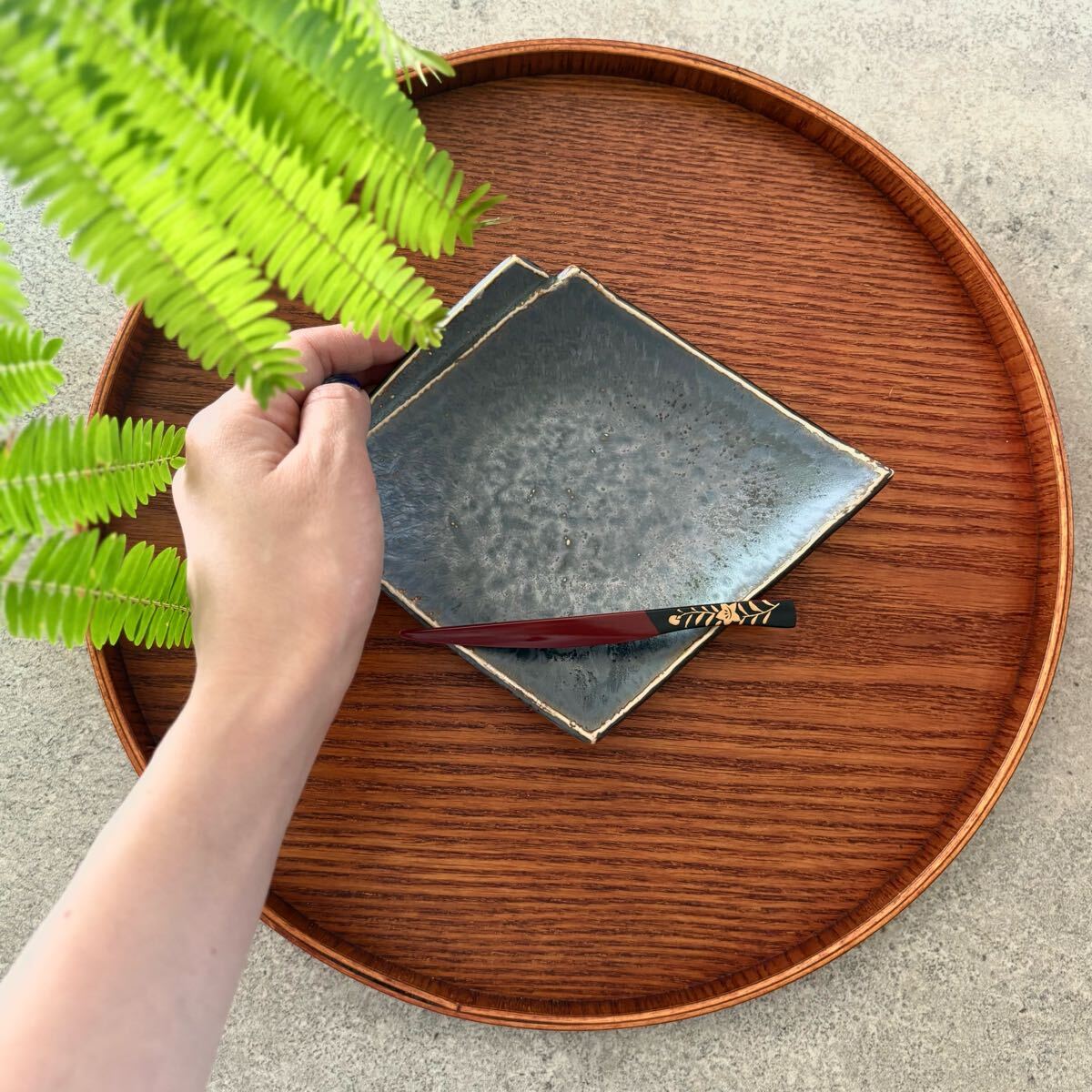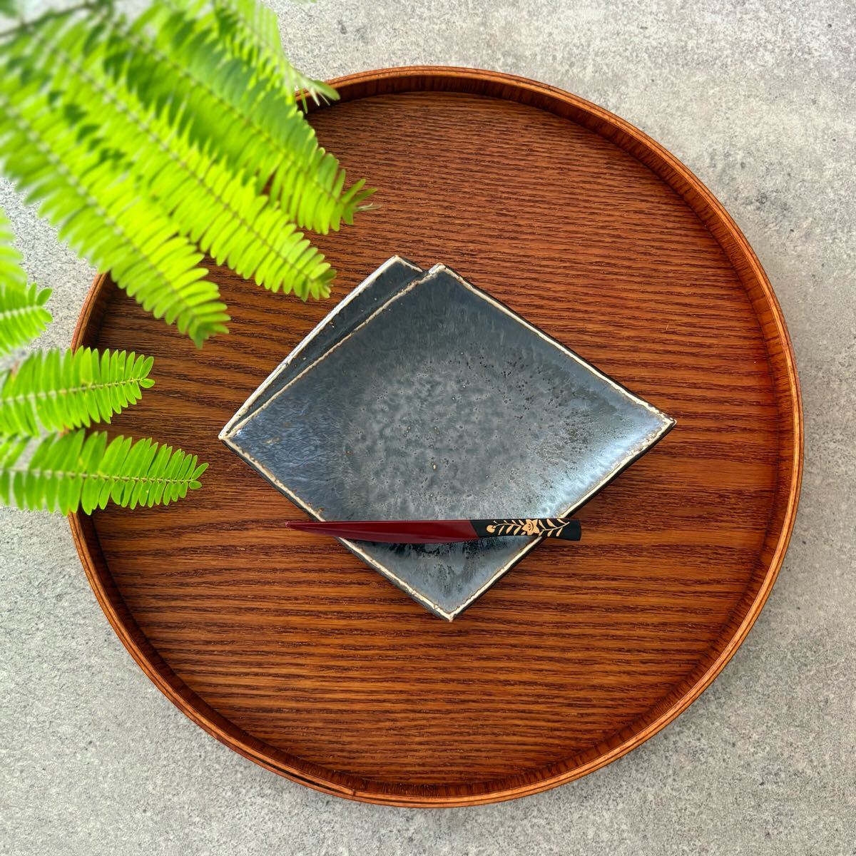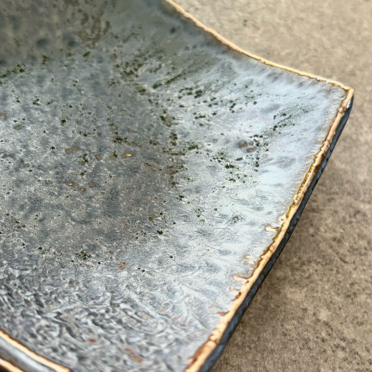 孔雀の羽のように美しく揺蕩う色合いが特徴的なお皿です。