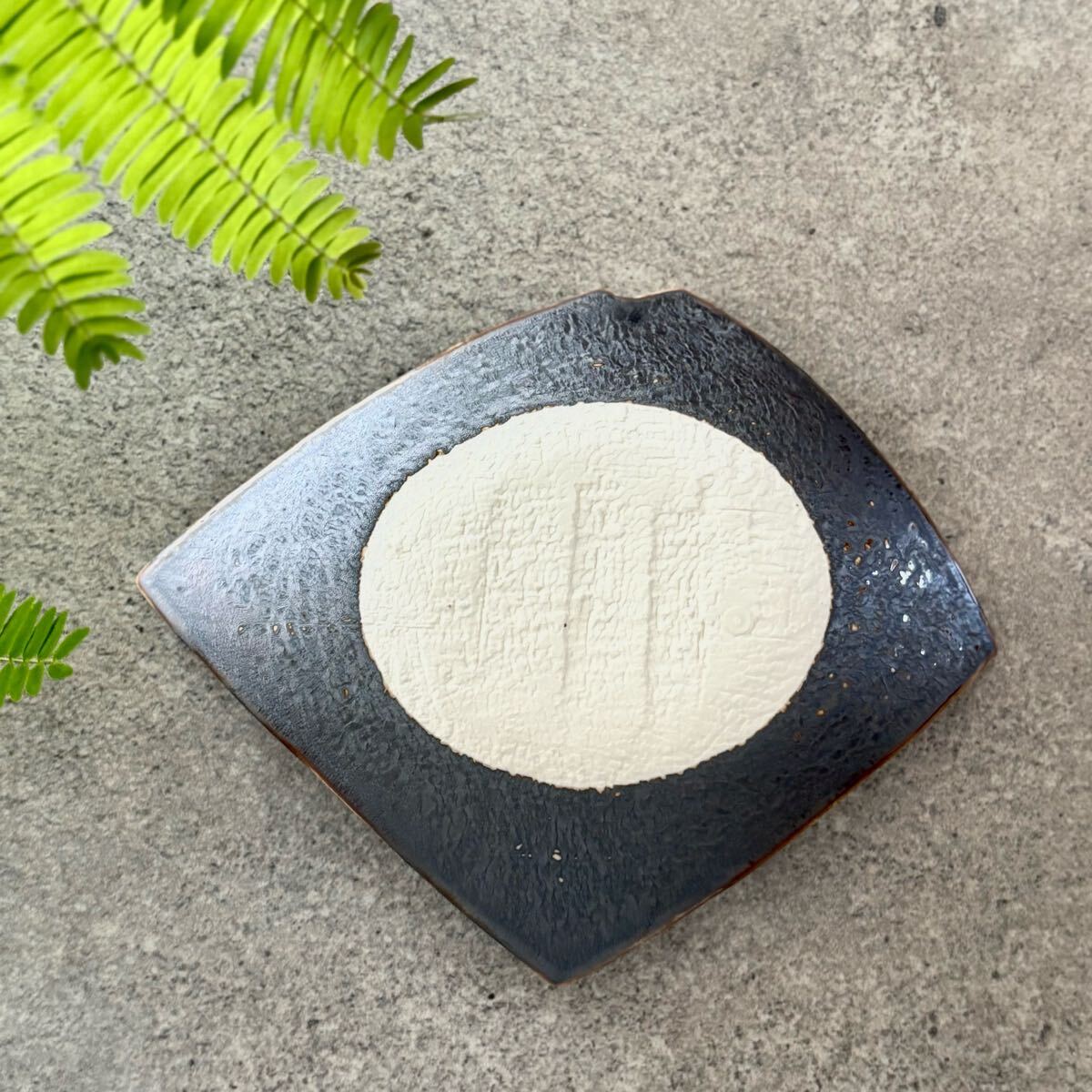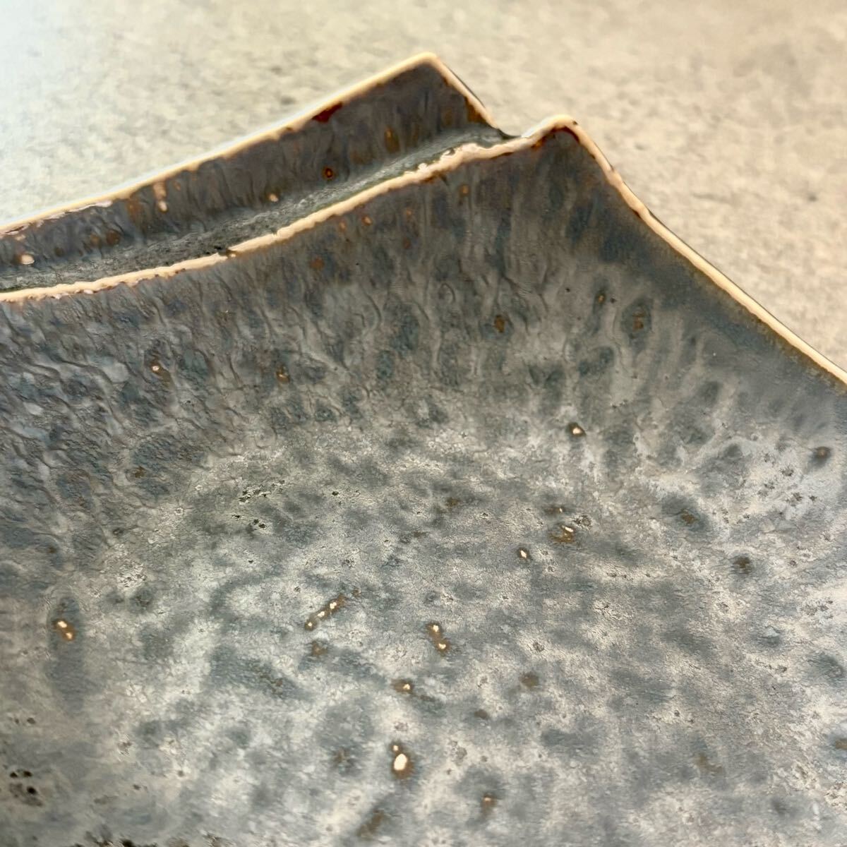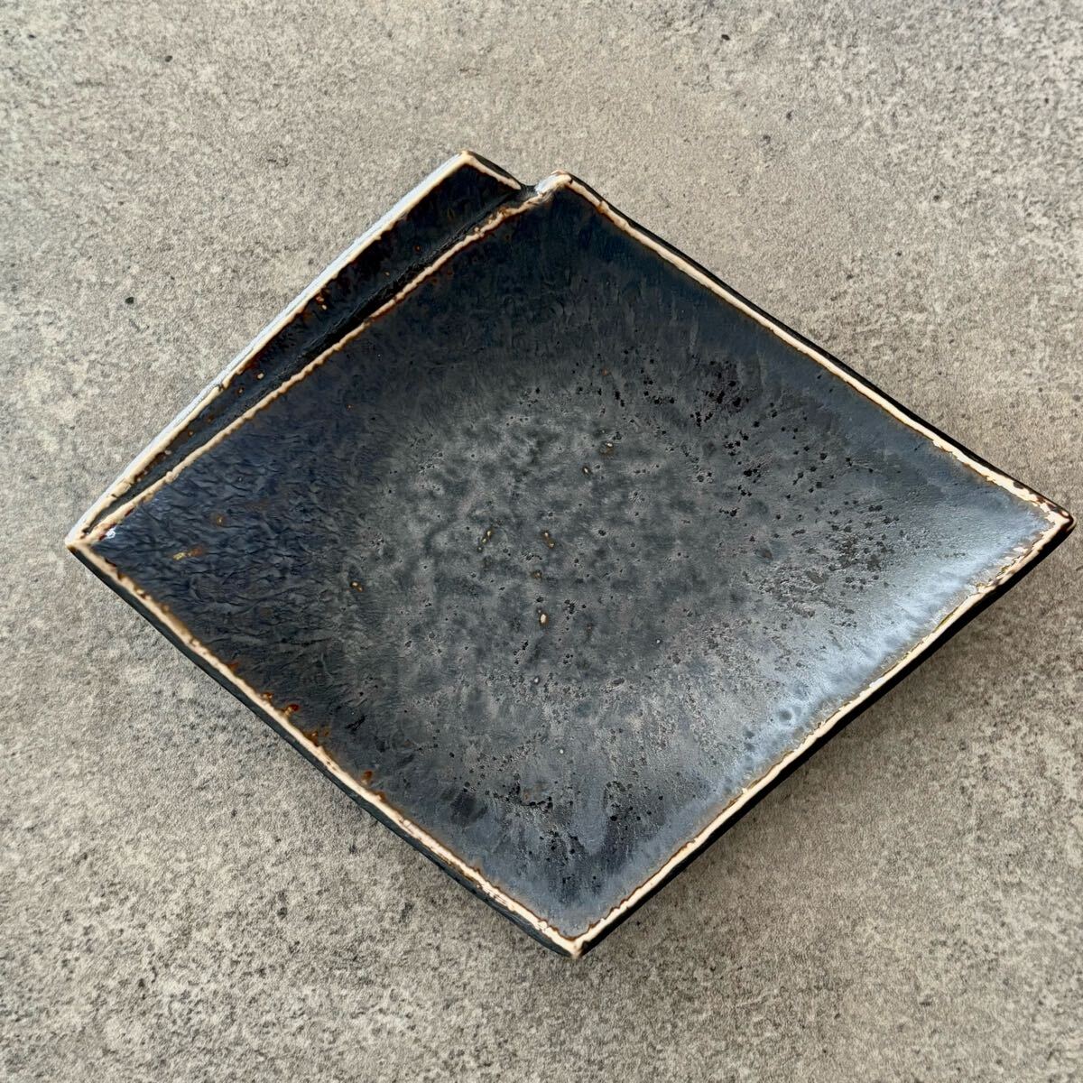 孔雀の羽のように美しく揺蕩う色合いが特徴的なお皿です。