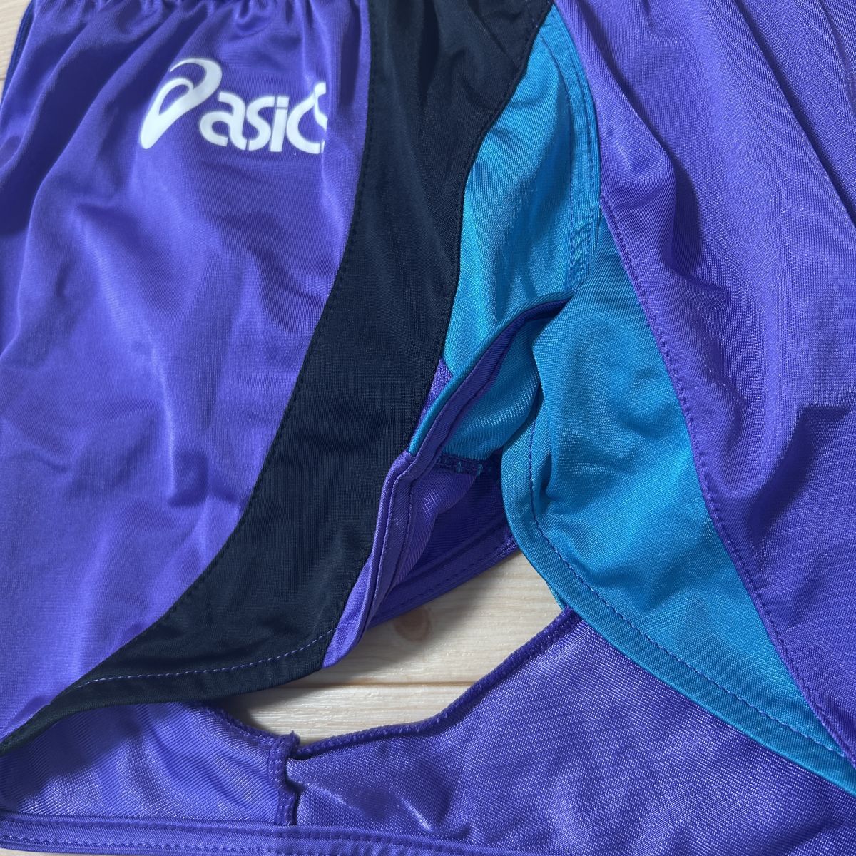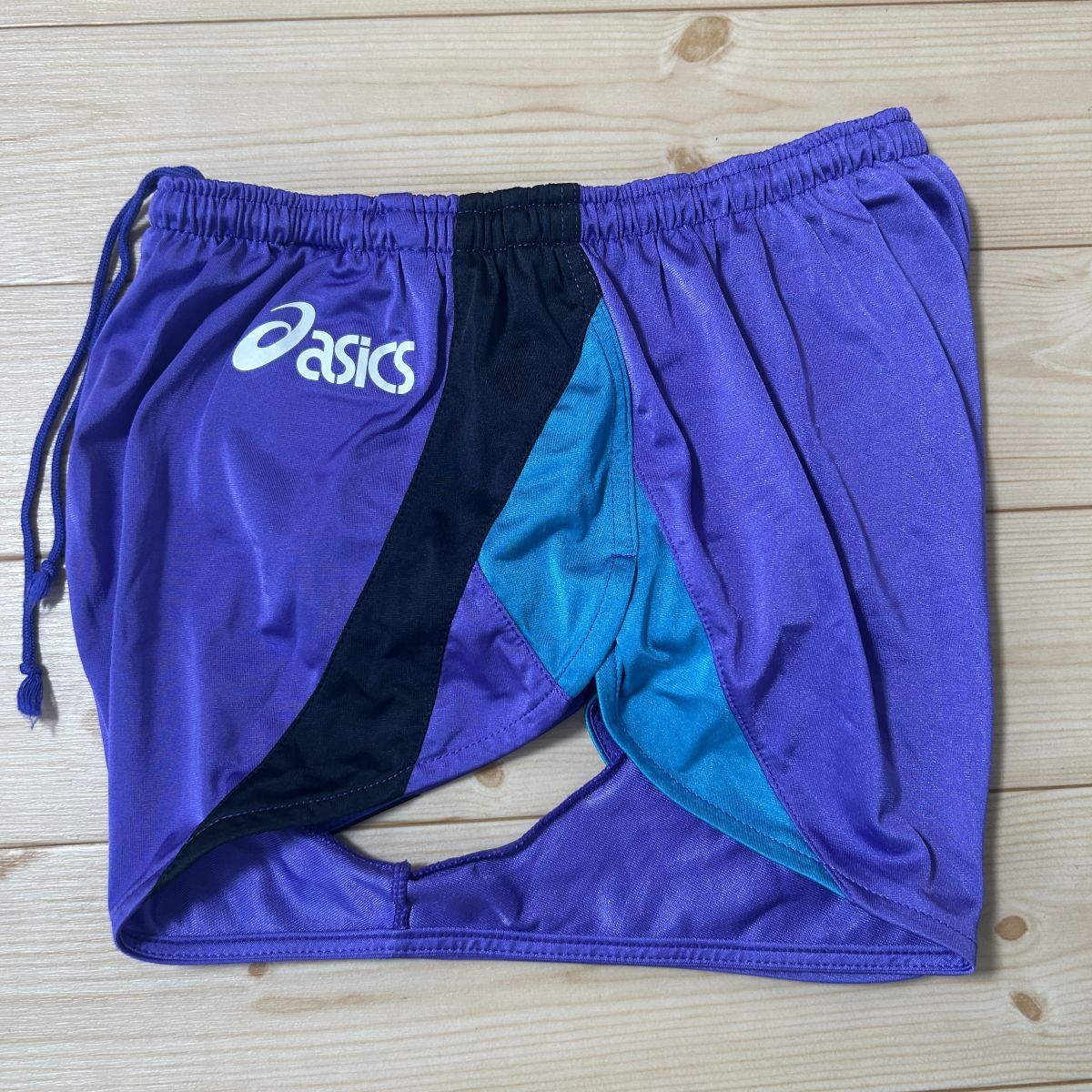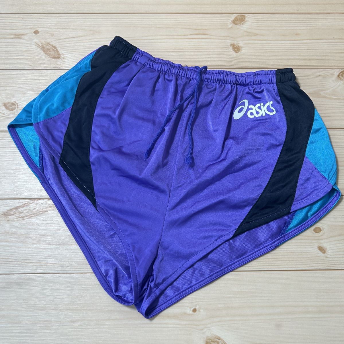 ◎使用少!asics アシックス 陸上 レーシング ショートパンツ ジャージ ランパン ユニフォーム サイドスリット 紫 レディース Mサイズ◆M69