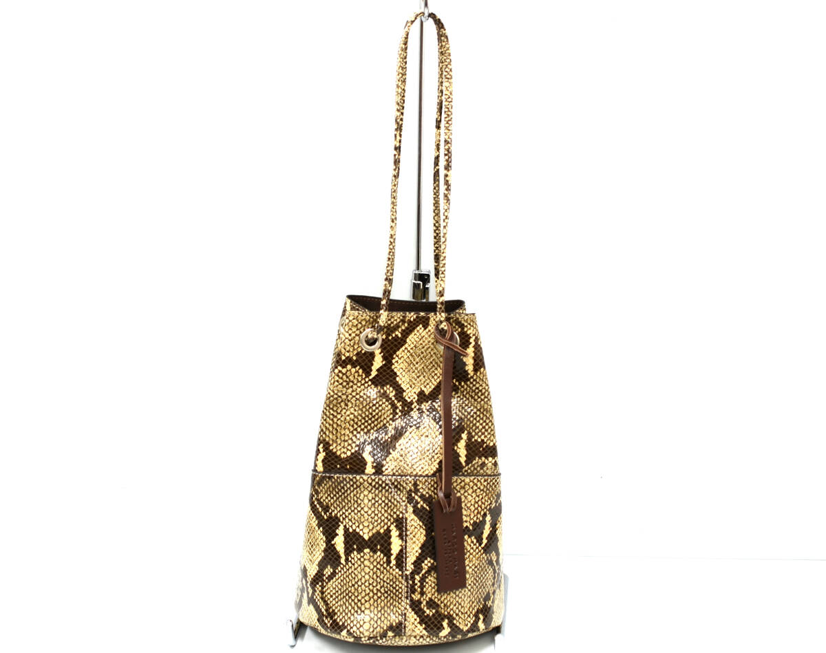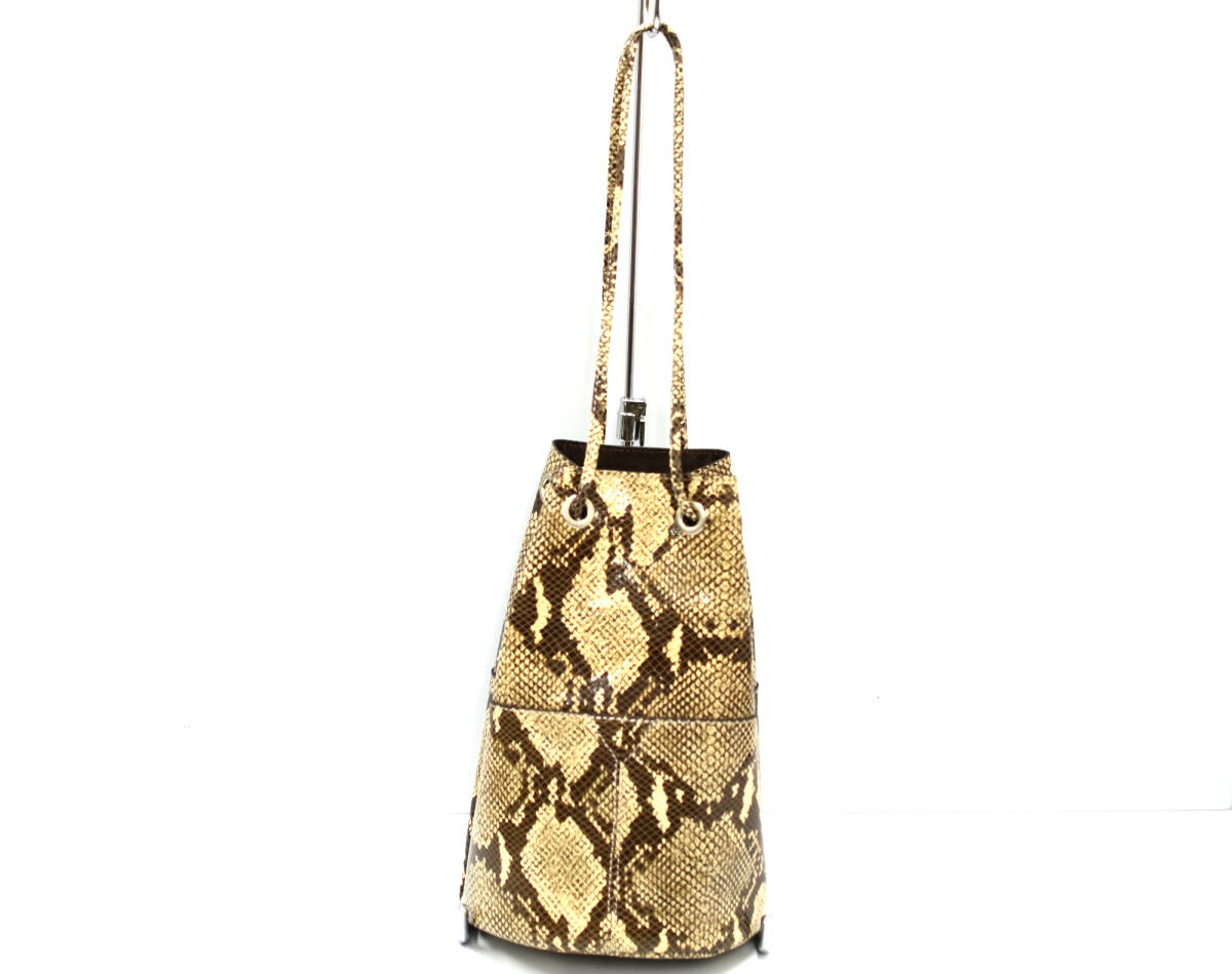 商品名 | マルコマージ(MARCO MASI) カーフレザー パイソンプリント 巾着ハンドバッグ 【中古】 JA-19196 |