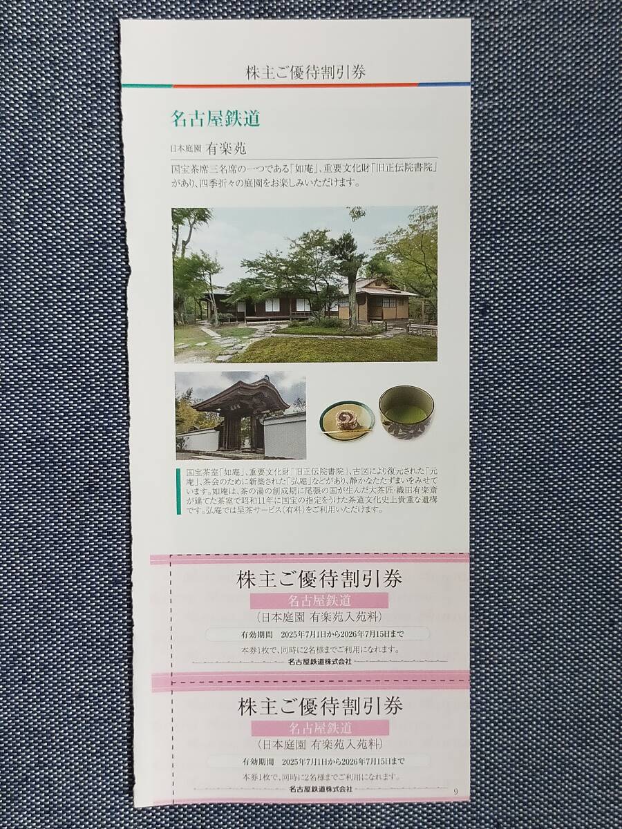 日本庭園 有楽苑 入苑料割引券 2枚セット 4名まで 名古屋鉄道 名鉄 株主優待 割引クーポン