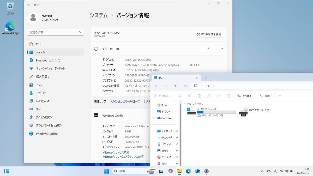 | OS | Windows 11 Home 64ビット版 | ||||||||||||||||||||||||||||||