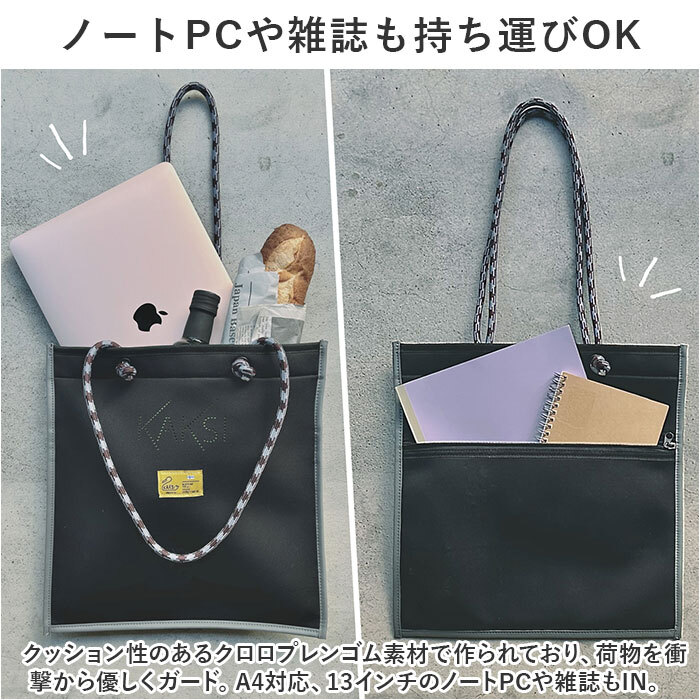 商品説明 | ・・KAKSI(カクシ)から、ノートPCを収納できてサブバッグとしても活躍☆クロロプレントートバッグが新登場。 ・【サッと手に取れる軽量&スリム設計】 ・マチのないフラットなトートバッグ。使い心地が軽やかで、移動の長い日も体にかかる負担を軽減。 ・【ガバっと開いて出し入れスムーズ】 ・開閉時のひと手間をなくした、オープン開口。いつでもどこでも出し入れラクラク。 ・【ノートPCや雑誌も持ち運びOK】 ・クッション性のあるクロロプレンゴム素材で作られており、荷物を衝撃から優しくガード。A4対応、13インチのノートPCや雑誌もIN。 ・【ポケット付きで小物も迷子知らず】 ・内側・外側に1つずつポケットを配置しており、細々した物もバッグの中で探す手間が不要。ポケットのカラー使いもおしゃれ。 ・【肩掛けできてストレスフリー】 ・ショルダーコードは肩に掛けやすい長さに設計。荷物が重くなっても大丈夫。 ・【コーデに溶け込むカラーとデザイン】 ・スタンダードカラーのバッグに、ブランドネームとショルダーコードがアクセント。お揃いで持てるジェンダーレスデザイン。 ・【数字の”2”を意味するKAKSI】 ・フィンランド語で数字の”2”を意味する言葉。あなたの1番大切な日常のすぐ隣に寄り添えますように…そんな願いが込められたブランド。 ・【ポケット仕様】 ・内側:オープンポケット×1 ・背面:ファスナーポケット×1 |
