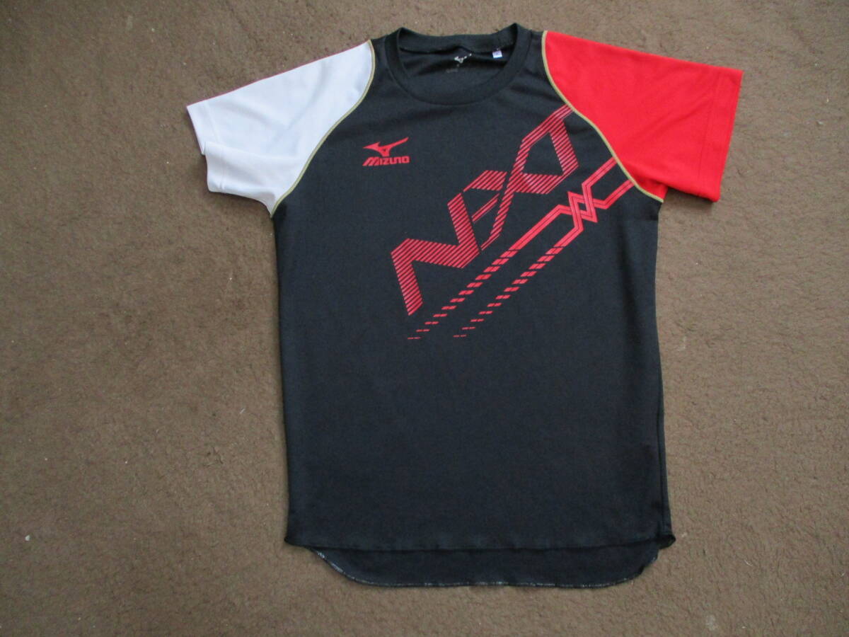 ミズノ製、高いファッション感覚と質感を兼ね備え、あらゆるジャンルのアスリートに絶大なる人気を誇るNXTブランドの、スタイリッシュなトレーニング・シャツで、Sサイズの表記“