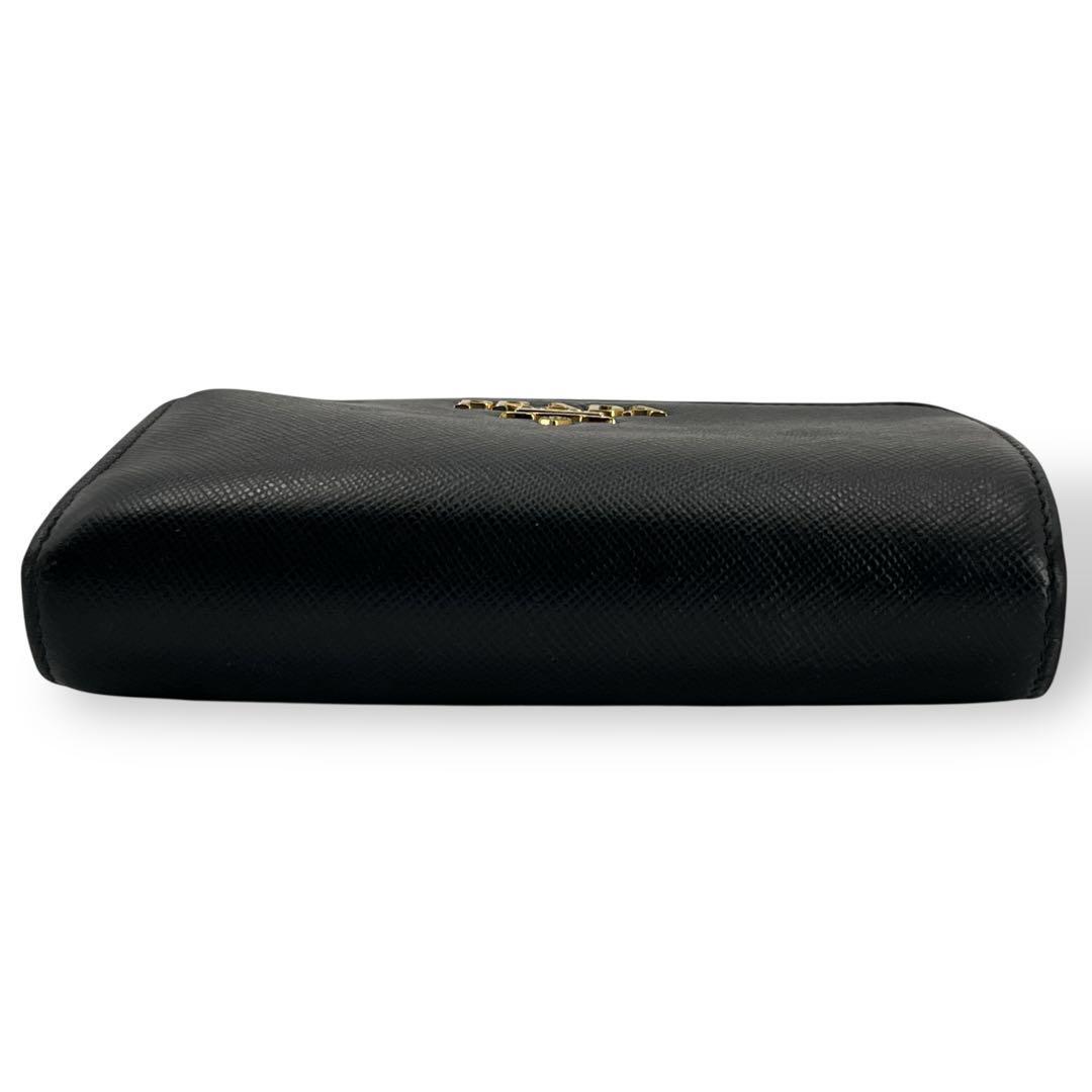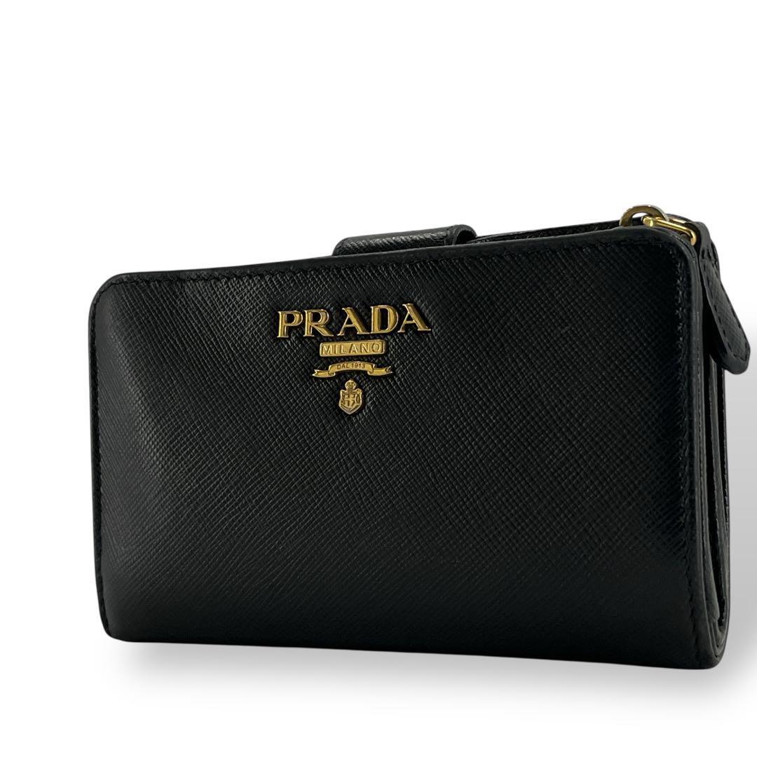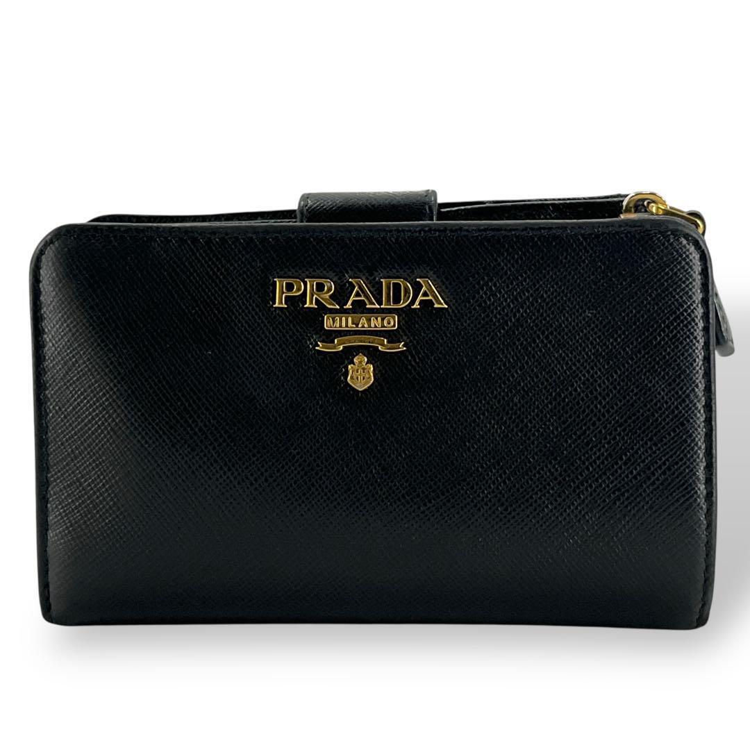 PRADA 金ロゴ メタルロゴ ロゴ刻印 ゴールド金具 黒 コンパクトウォレット 折り財布 男女兼用 ユニセックス