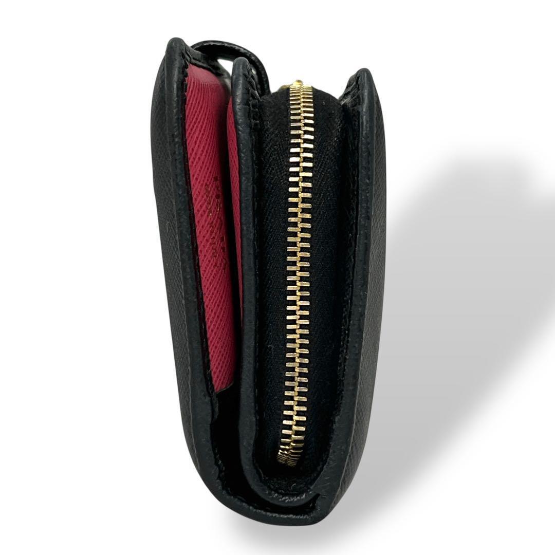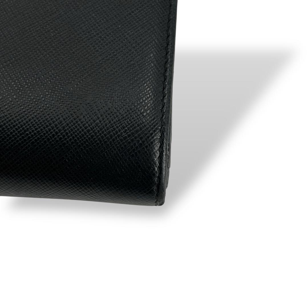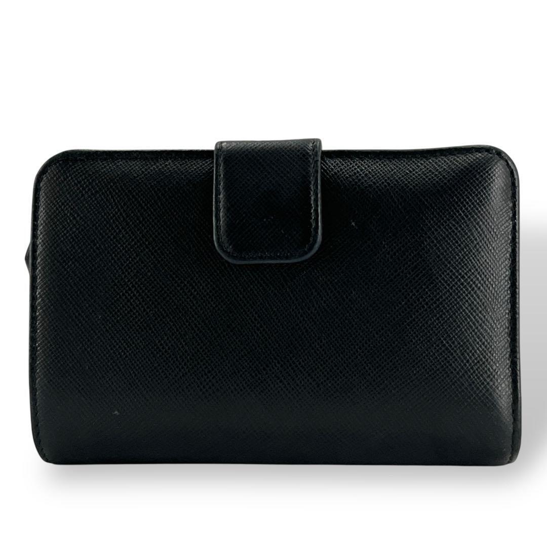 PRADA 金ロゴ メタルロゴ ロゴ刻印 ゴールド金具 黒 コンパクトウォレット 折り財布 男女兼用 ユニセックス