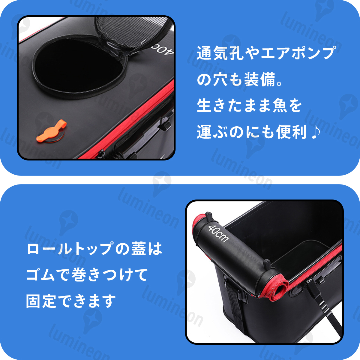 酸素ポンプ用穴や通気孔も備えているので魚を生きたまま入れてもOK。