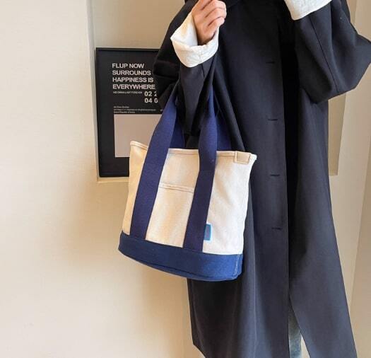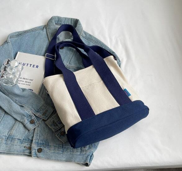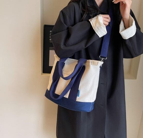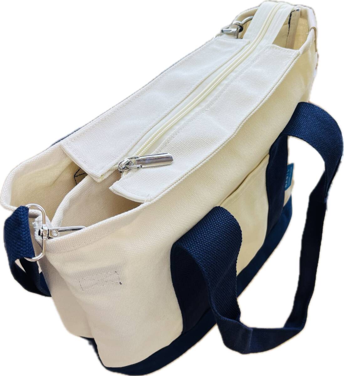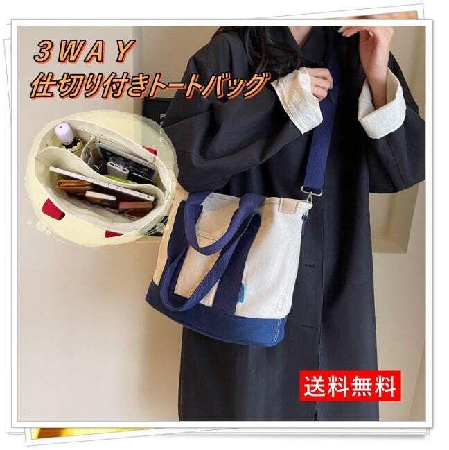 3WAY(肩掛けバッグ・斜め掛けバッグ・手提げバッグ)のオシャレなバイカラー仕切り付きトートバッグです。