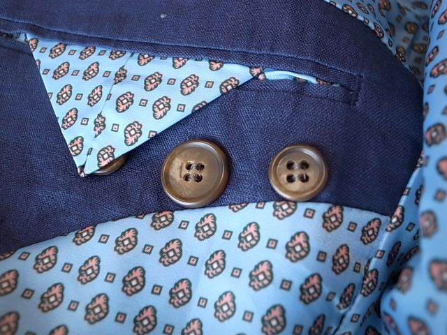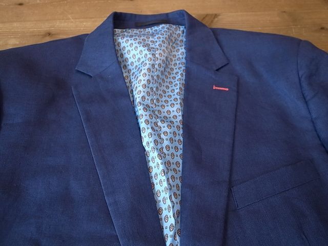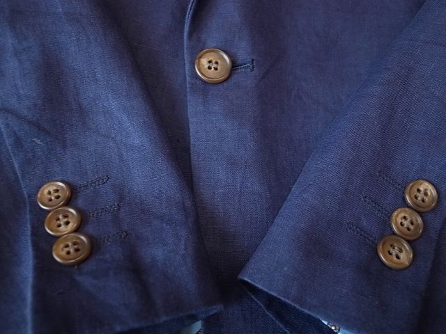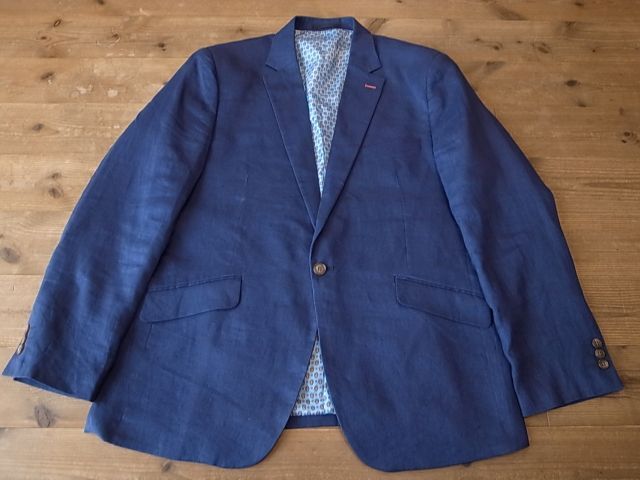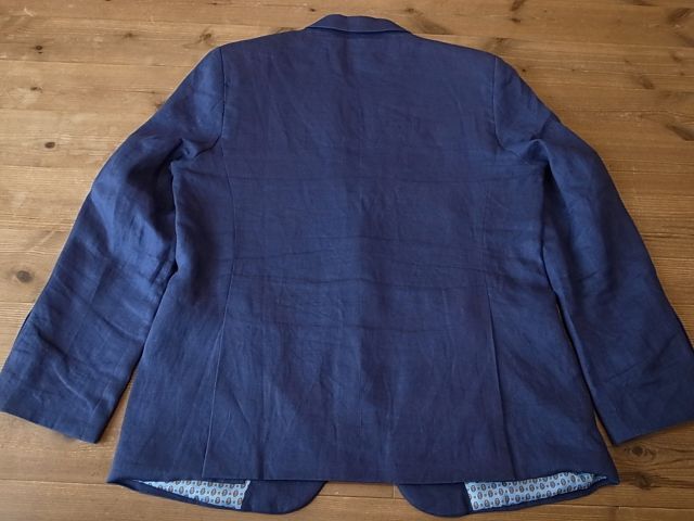 ◆ブランド 「Hockerty」 アメリカ古着 ●サイズ表記 なし 実寸サイズ XL相当 肩幅…47cm(肩先から肩先の間の長さ) 身幅…58cm(両脇を横直線に結んだ長さ) 着丈…74cm(後衿ぐり中央から後身頃裾) 袖丈…64cm(袖付けの肩先から袖先) ※平置き状態での素人採寸ですので、多少の誤差はご了承ください。 ●素材…リネン 春夏向き ●色… 紺 ●ポケット… フラップポケット ●裏地…総裏仕立て ●ベント…サイドベンツ ●製造国表記…なし ●状態…使用感は少ない美品です。スペア釦付属 ★送料 全国一律 700円 佐川急便 (北海道900円 沖縄その他離島1700円) ※複数ご購入の場合、同梱発送可能です。 |