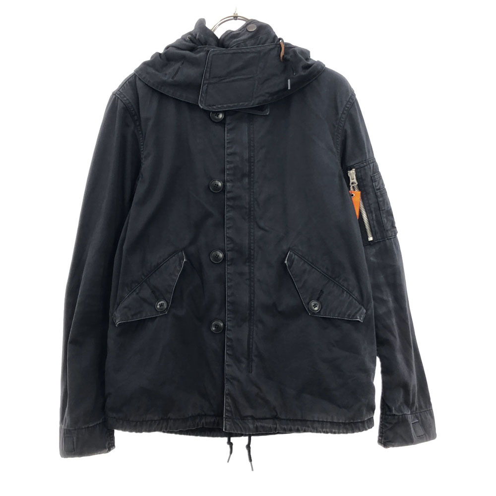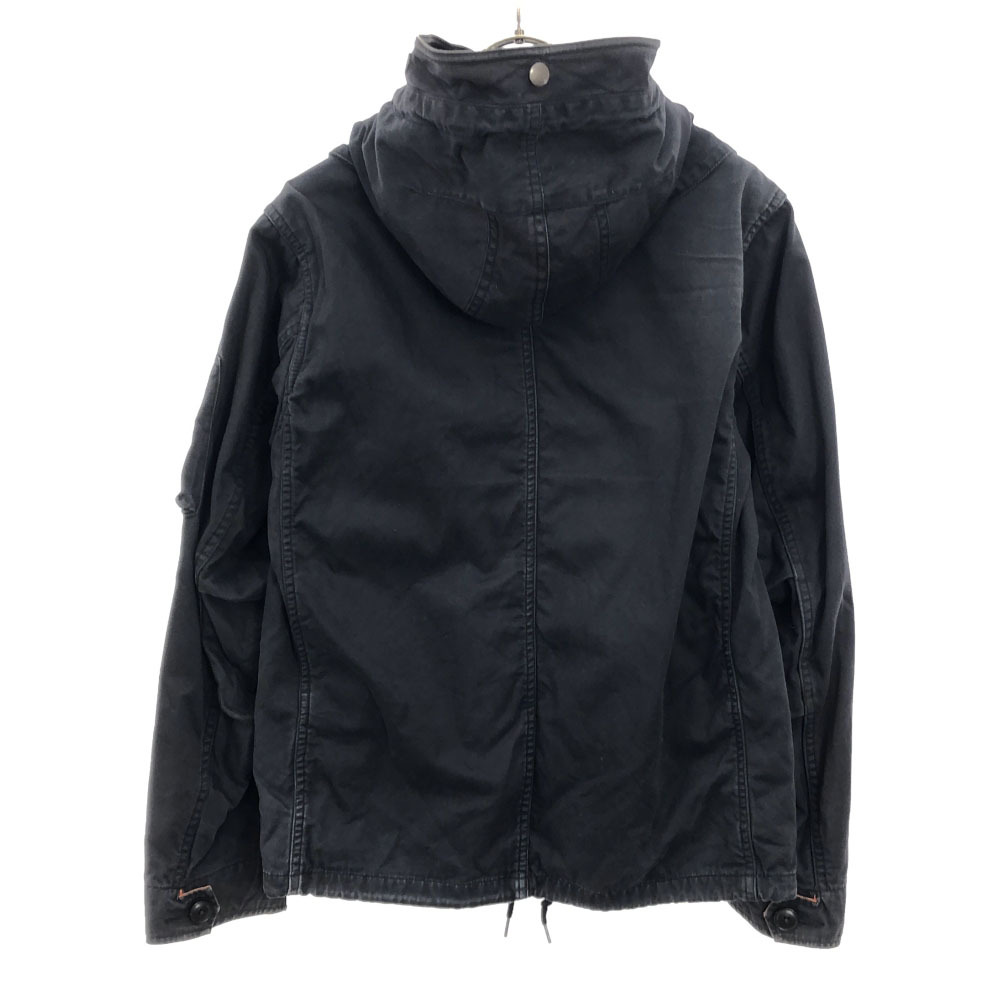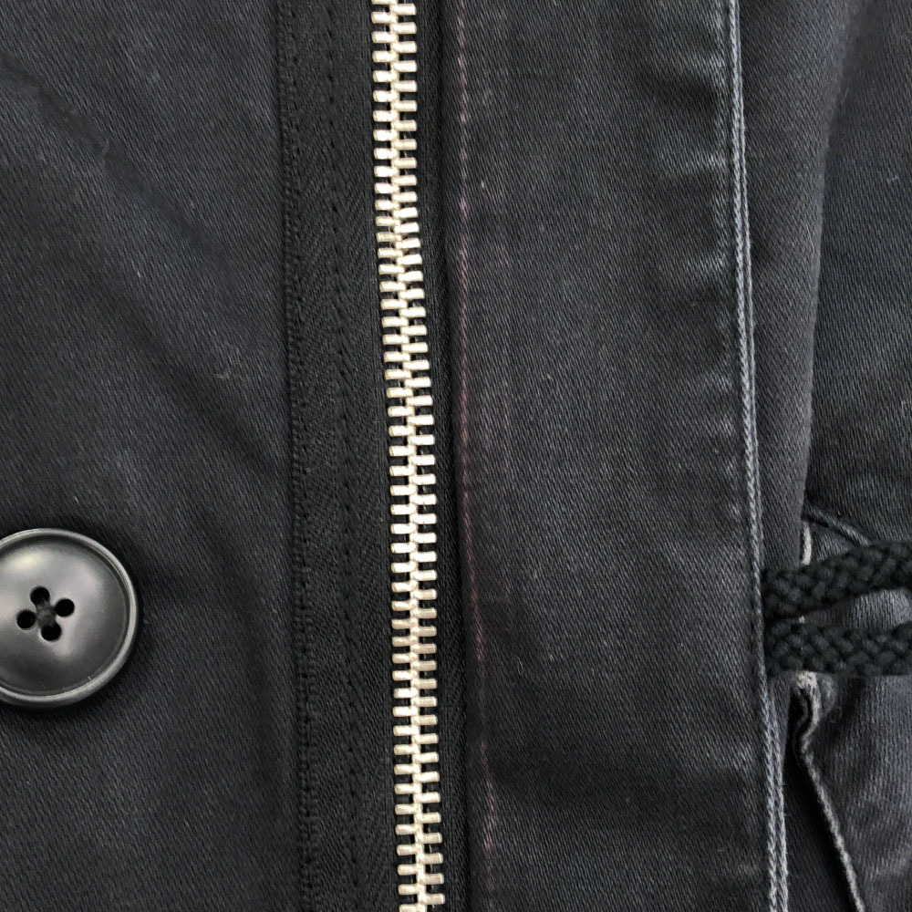 | 詳細 | 全体的に薄らと汚れており、フードと両袖口と裾周りに目立つ汚れもあります。前身頃のファスナー沿いにはヤケもあります。破れ等のダメージはございませんが、古着にご理解の上ご購入をお願い致します。 |