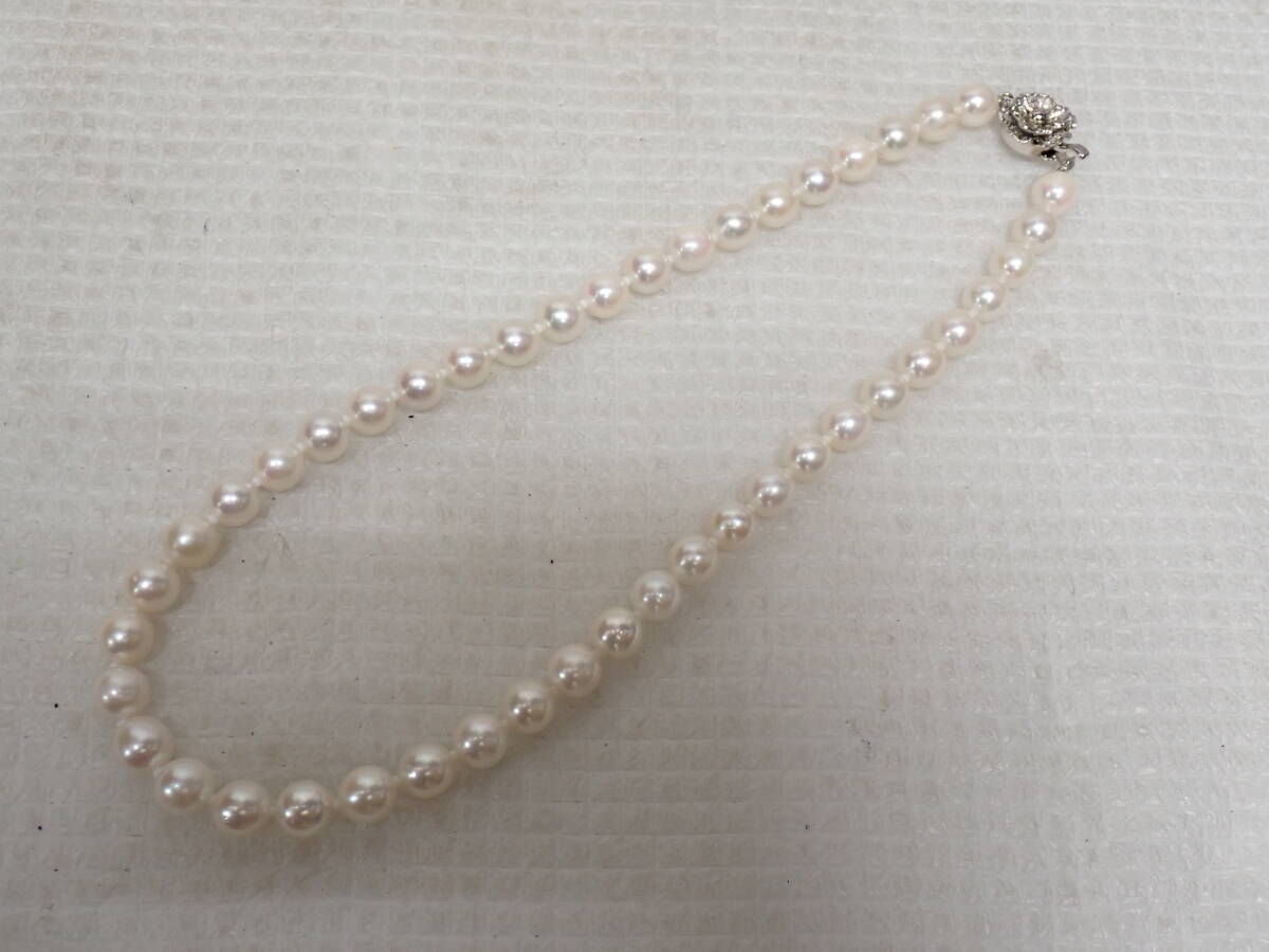 天然 あこや真珠 パール シルバー刻印金具 ネックレス イヤリング セット 約8mm珠 アクセサリー 冠婚葬祭 定形外郵便全国一律660円 B1-MA 中古品です。 天然素材の為、パールの凹凸がございます。多少のスレがありますが、目立つ様な傷みはございません。 ○サイズ パール 約8mm珠 長さ 約42cm 重量 約38.8g イヤリング重量 約2.4g ※素人採寸の為、多少の誤差はご了承下さい。 詳しい状態などは画像を参考に判断してください。 状態の説明はあくまでも出品者の主観ですので、神経質な方のご入札はお控え願います。 写真に写っている物がすべてですので、その他に付属品などはありません。 ※ご使用のパソコン、モニターなどの環境によっては実際の色と若干異なって見える場合がございます。 お探しの方はお見逃しなく! この機会にぜひどうぞ! ノークレーム・ノーリターンとなります。 よろしくお願いします。 特定商取引法に基づく表記 【会社名】 株式会社 西川殖産 【代表取締役】 西川 守 【古物営業許可】 兵庫県公安委員会許可 第631641300006号 【店舗】 エタニティ野里店 【営業所所在地】 兵庫県姫路市野里311-3 アクロポリスⅡ-1F 【連絡先】 079-222-7705 【営業時間】 午前10時~午後7時 【定休日等】 水曜日は定休日となっておりますので、火曜日の夕方から水曜日にご入金、ご連絡などをしていただいた方へのご連絡・発送などは翌日以降となってしまいます。 オークションにつきましても、火曜日の夜から水曜日にご落札していただいた方へのご連絡は翌日以降となってしまいます。 ※その他、GW・お盆・年末年始などもお休みを頂いておりますので、その期間中などもご連絡・発送などできません。(※休みの期間はその都度異なりますので、お急ぎの方は事前にご質問などでご確認していただけますよう、よろしくお願いします。) こちらの都合で誠に申し訳ありませんが、あらかじめご了承いただいた方のご入札をお願い致します。 | |||