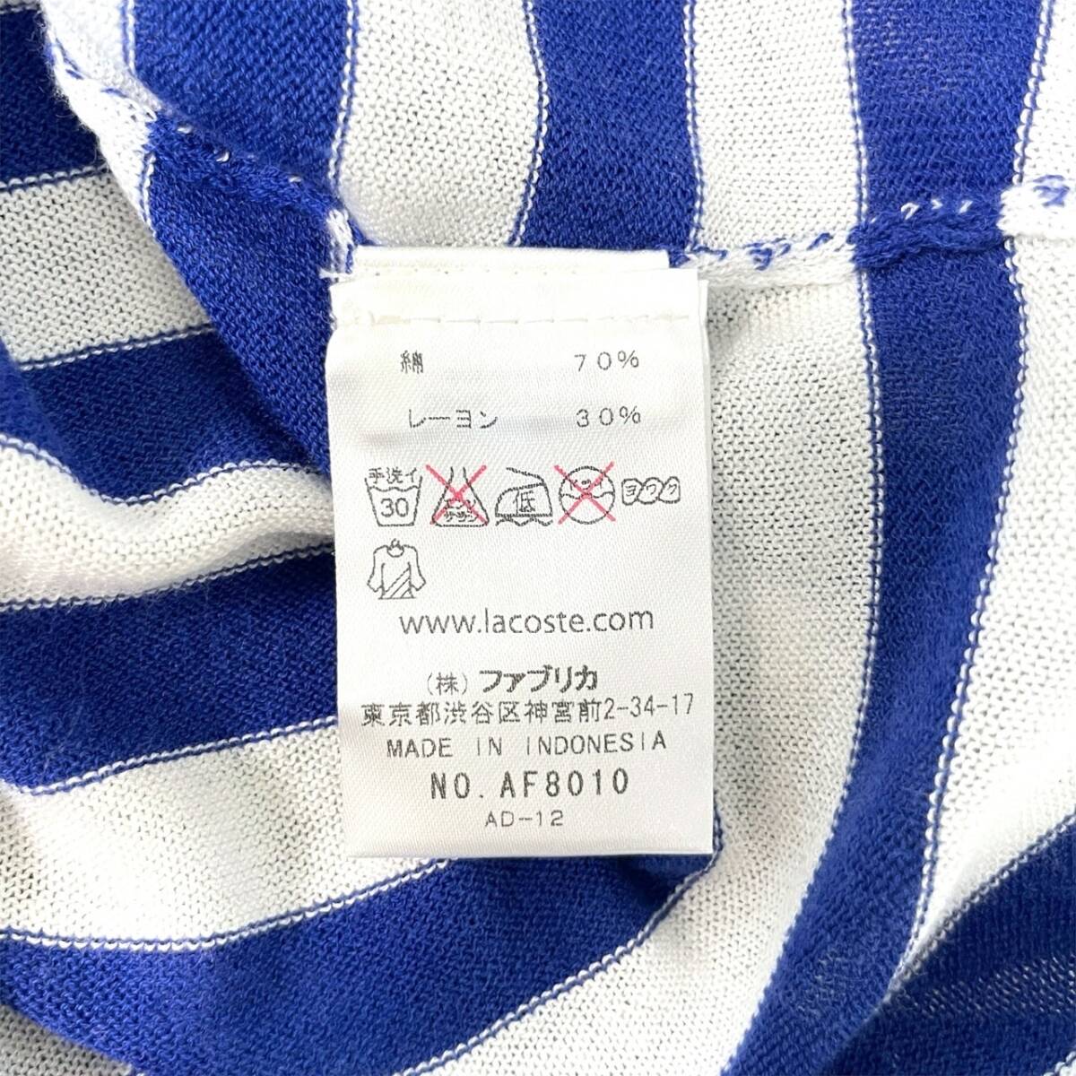 新品 LACOSTE ラコステ ボーダー レーヨン 長袖 カットソー Tシャツ 40 LL
