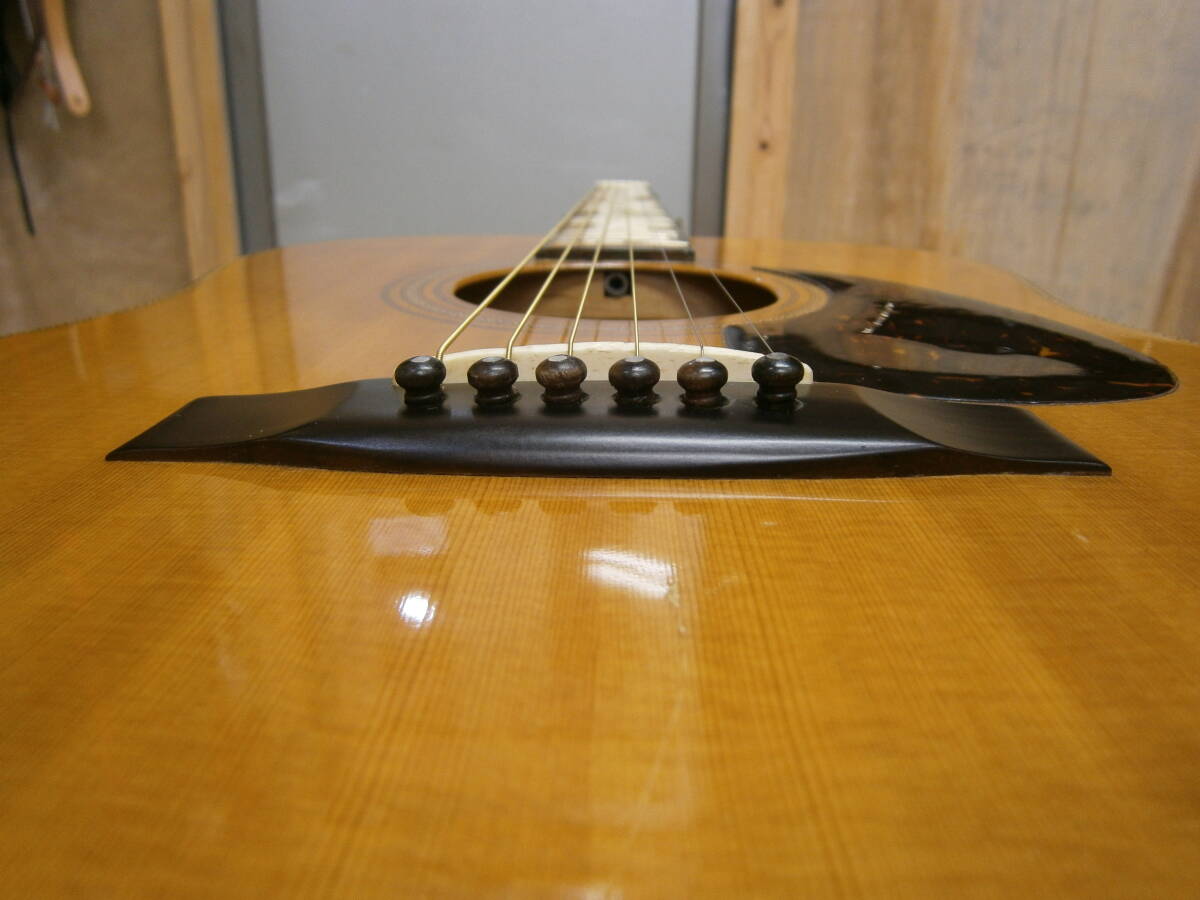 ◎傷は、ピックガードにストローク傷があります(画像あり)、ブリッジの下方向に1本、引っ掻き傷があります(画像あり)、ボディバックは、ごく薄い引っ掻き傷がほんの少しあります(画像あり)、それ以外、ごくごく小さな傷・ごくごく擦り傷が少しあるだけで、この年代にしては綺麗な状態かと思います(画像あり)。金属部はペグは若干の金属疲労の、くすみはありますが茶サビ等はありません(画像あり)、フレット部は若干の金属疲労の、くすみ・変色・薄いサビのある個所があります(画像あり)。指板は、薄い弾き跡があります(画像あり)。弦は新品に交換してあります。