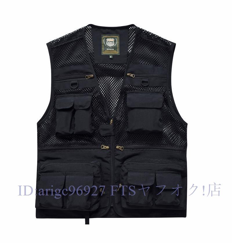 新品★上質多機能ベストメンズメッシュフィッシングベストチョッキお釣りベストアウトドアジレ作業服カメラマンブラック