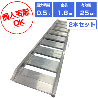 | 軽量アルミブリッジ 軽機械の運搬・畦こし・段差越え等に 従来品より 約15% 軽量化 0.5t タイプ 180cm×25cm ※1本あたり250kg以下でご使用ください。 ※使用時の昇降角度は18度以下でご使用ください。 |