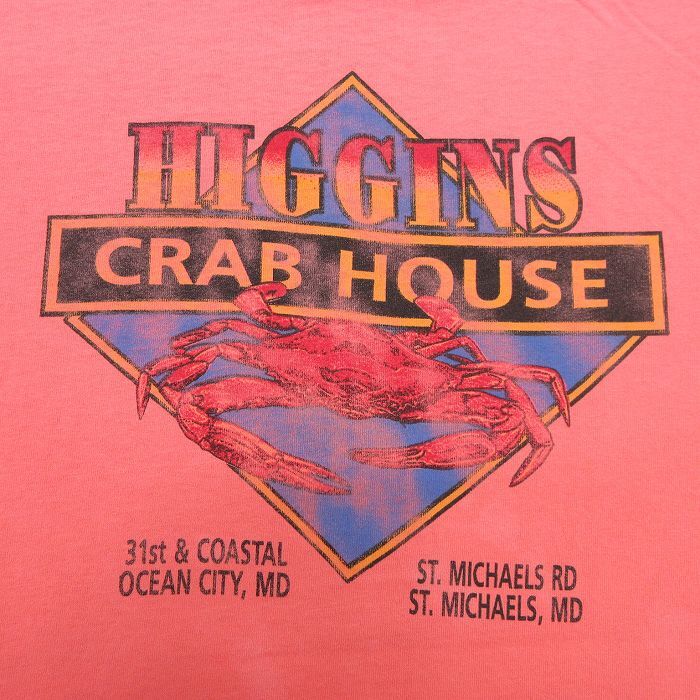 【商品名】 L★古着 フルーツオブザルーム 半袖 ビンテージ Tシャツ メンズ 90年代 90s クラブハウス カニ コットン クルーネック ピンク系