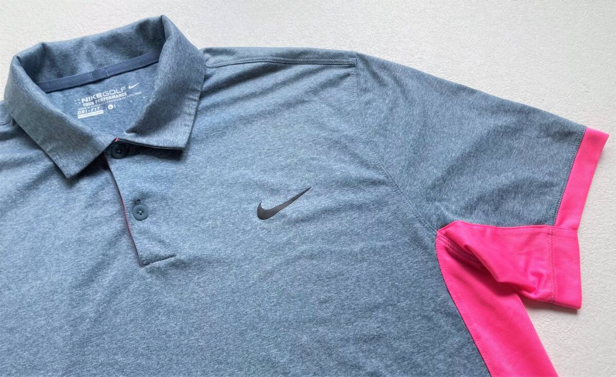 USED品◆NIKE GOLF◆ナイキ ゴルフ◆半袖ポロ◆L◆ブルーグレー×ピンク