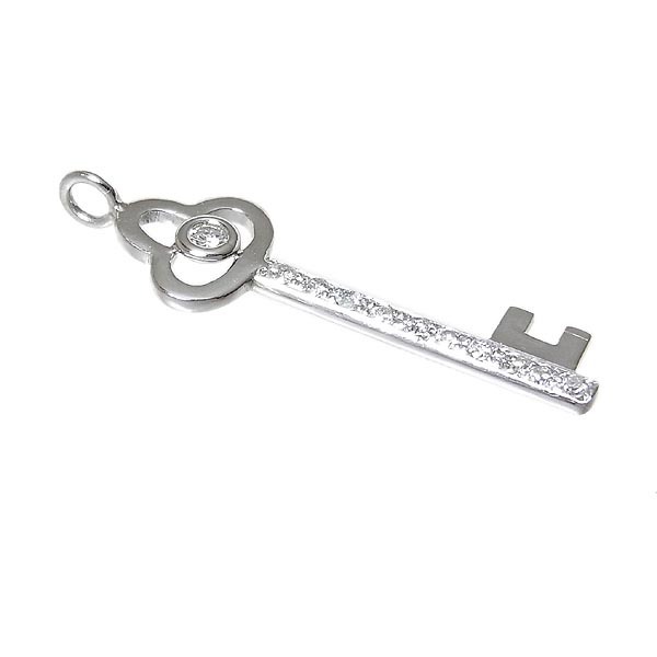 K18 750刻印(WG) メレダイヤ入り キーデザインペンダントトップ D0.10ct/0.15ct/2.0g |