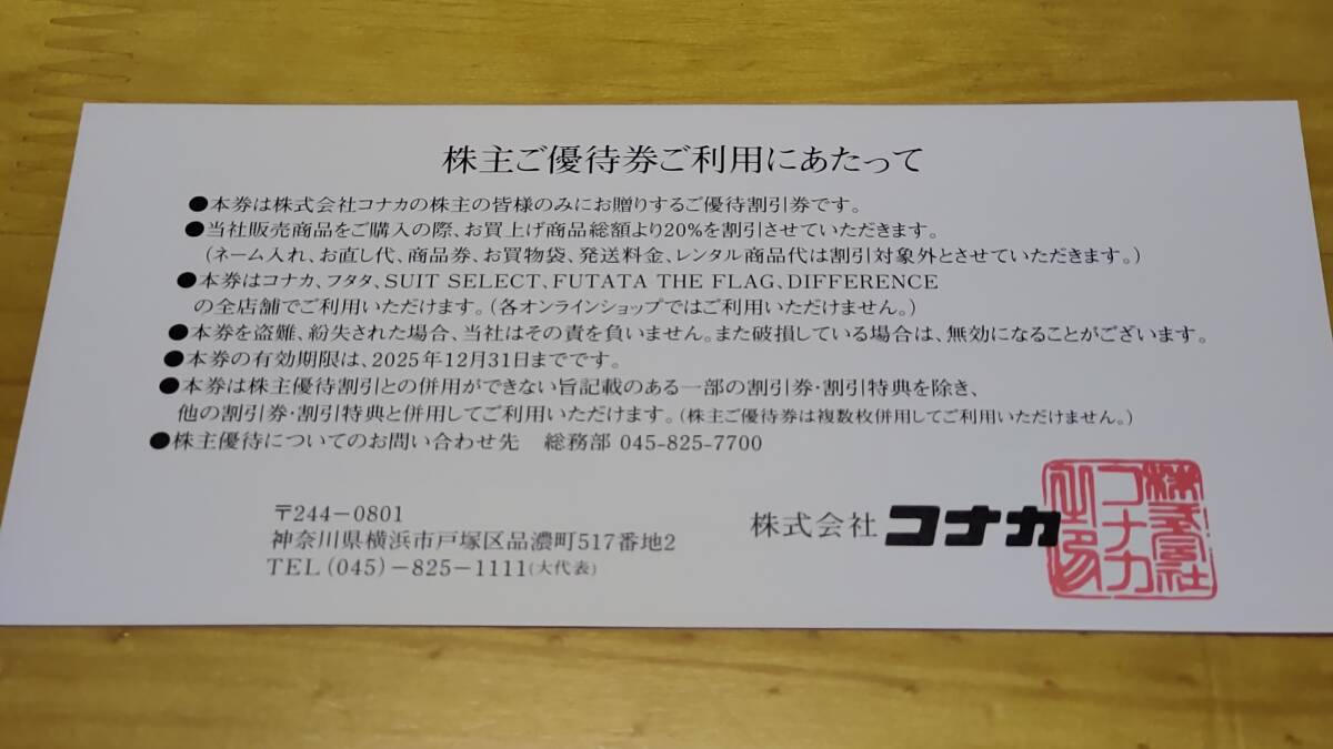 ★コナカ 株主ご優待券 1枚  20%OFF ※有効期限2025年12月末