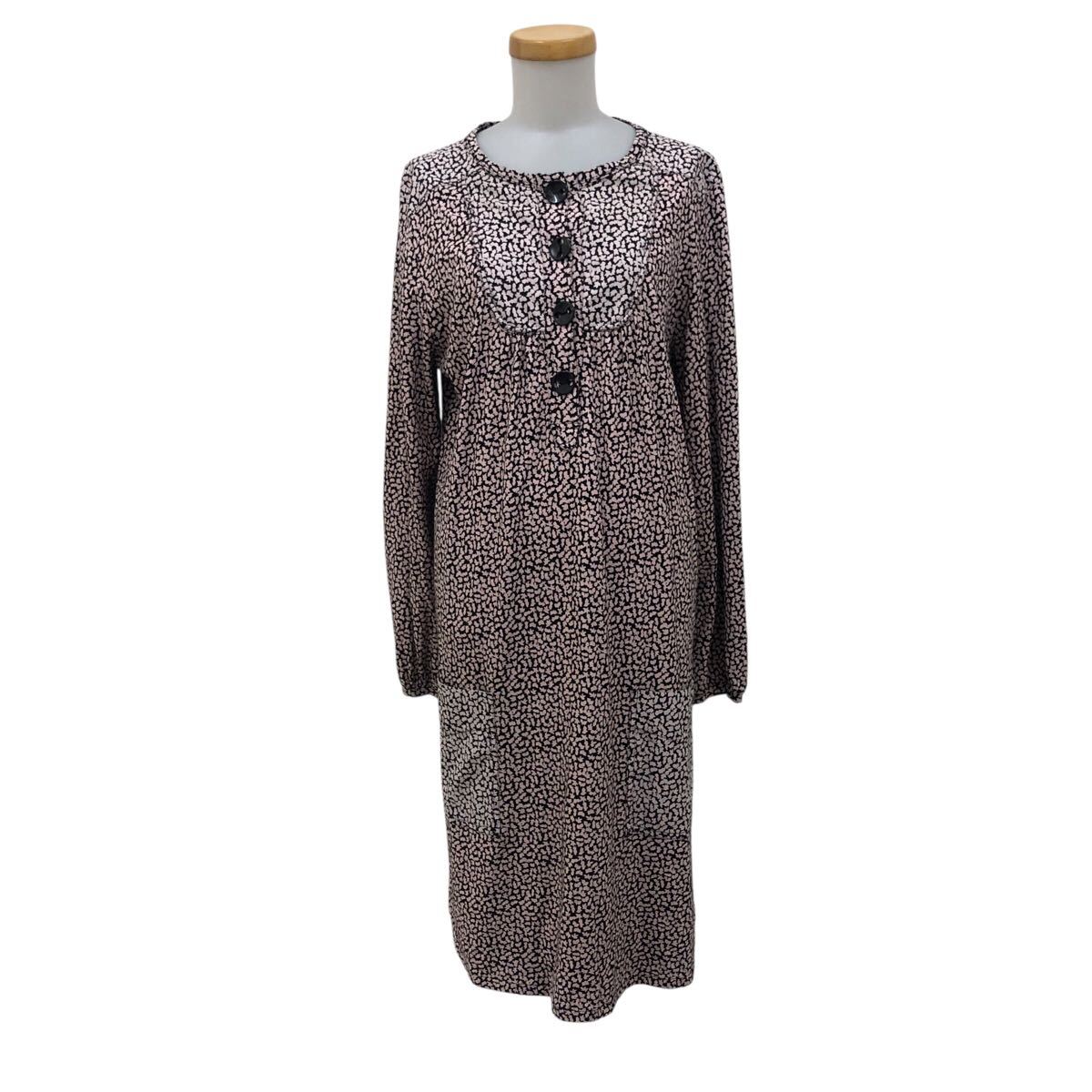 NC311-10 A.P.C. アーペーセー 長袖 膝丈スカート スカート ワンピース ワンピ レディース M ピンク ブラック 黒 総柄