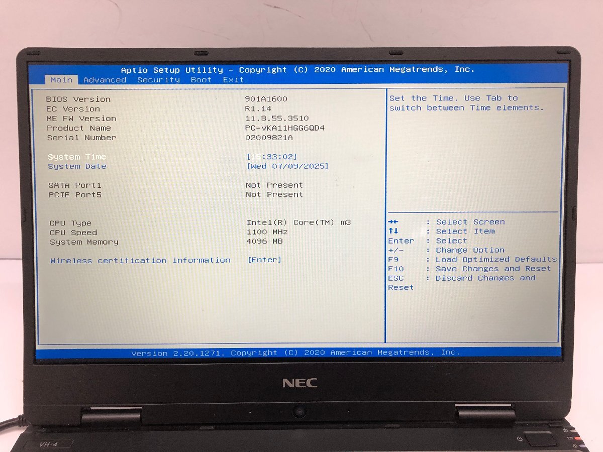 ジャンク/ NEC PC-VKA11HGG6QD4 Intel Core m3-8100Y メモリ4.1GB ストレージ無し 【K17788】