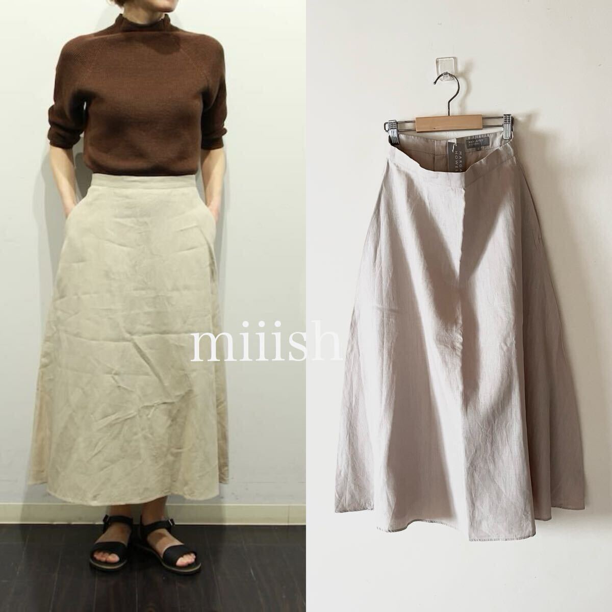 リネンを高密度に織り上げた新型フレアスカートです。