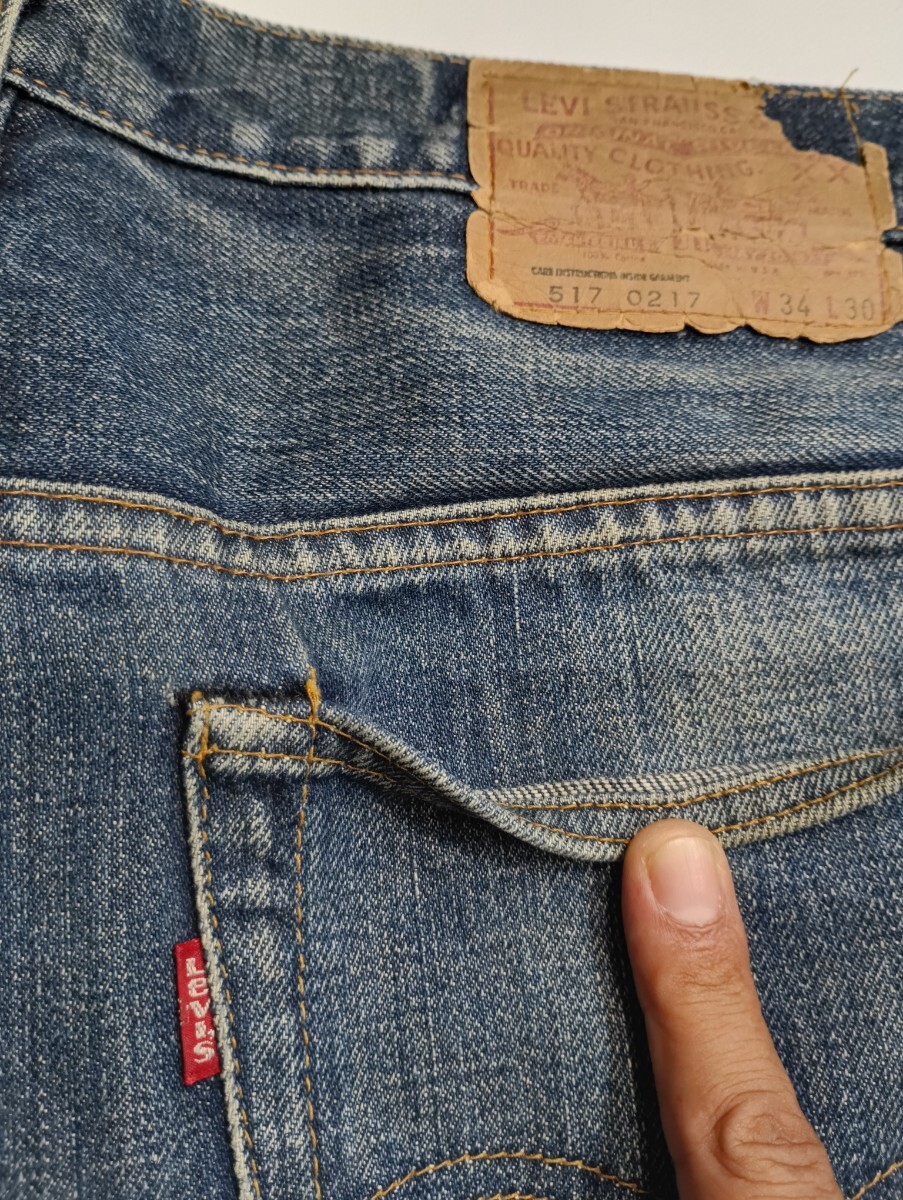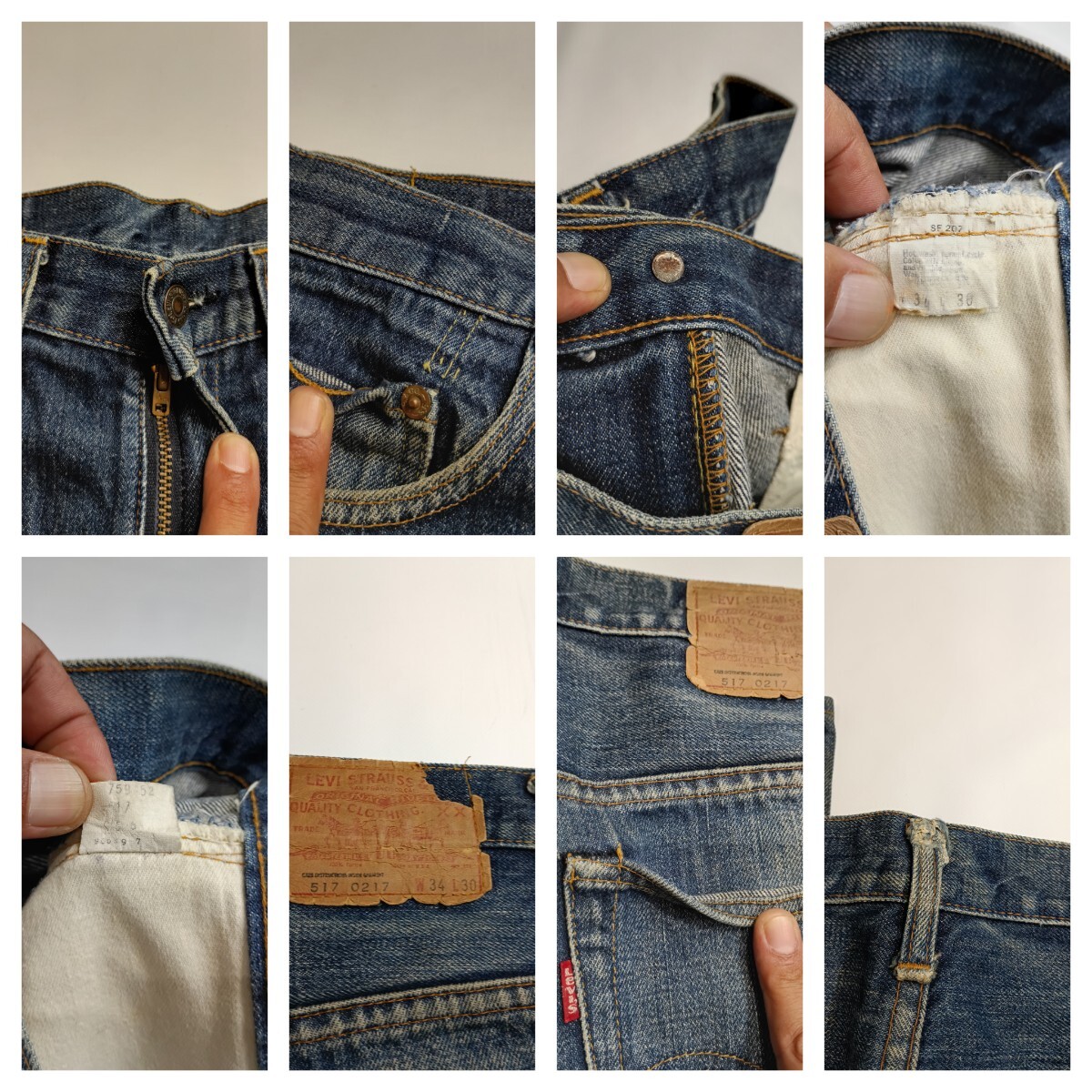 70's ヴィンテージ Levi's リーバイス USA製 517 66前期 濃紺色落ちデニム ブーツカットジーンズ パンツ W34 L30約87cm ボタン裏6 1975 42TALON