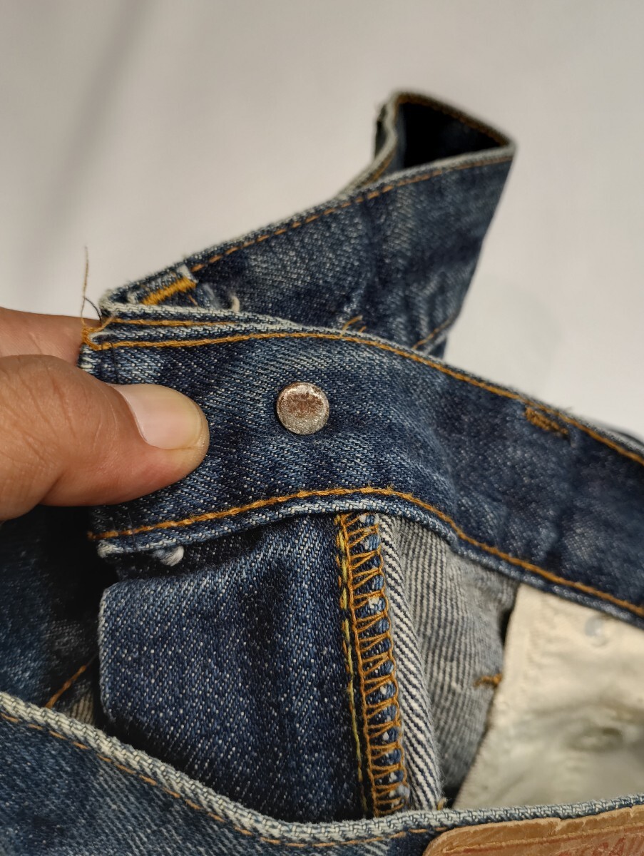 状態は良く、使用感や褪せ、色落ち、淡い汚れや織り傷、 小傷を発見、裏側リベット欠品等正直あるかと思いますが、