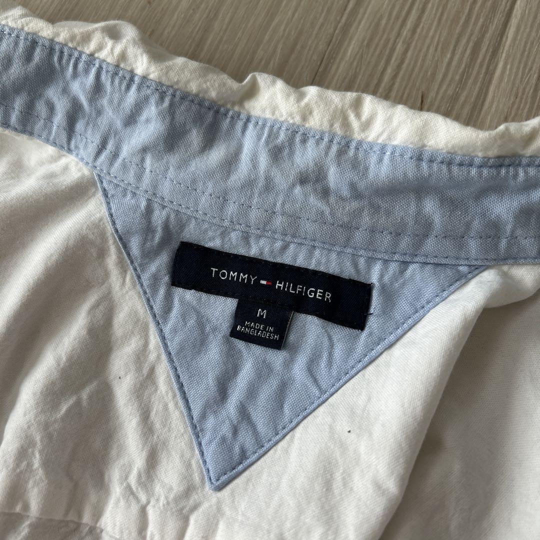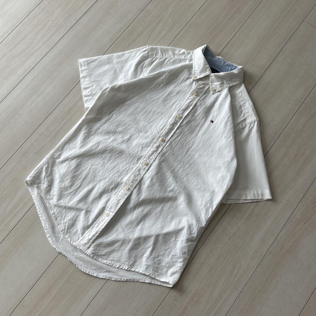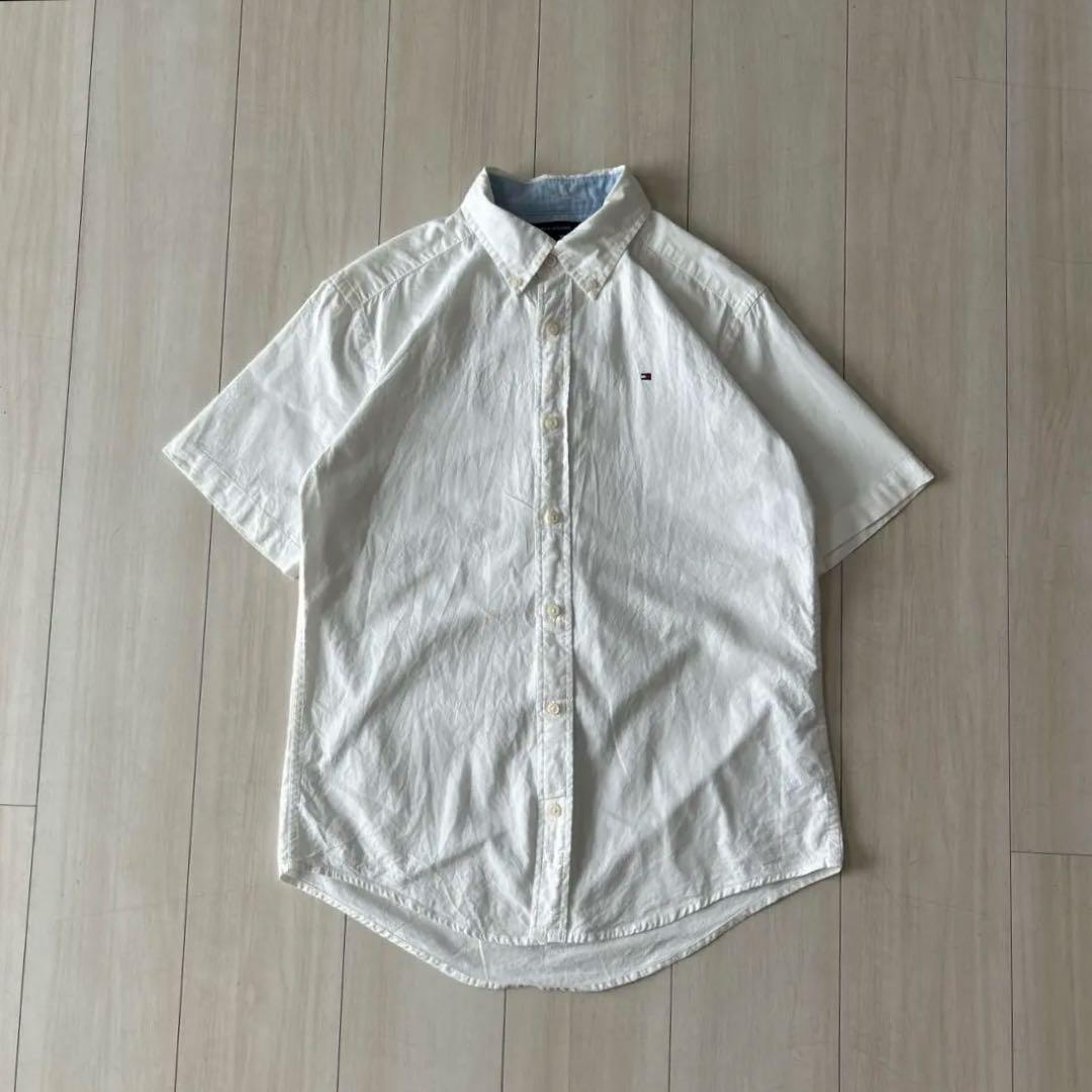 Tommy Hilfiger トミーフィルガー 白 半袖シャツ ボタンダウン コットン100%、バングラデシュ製