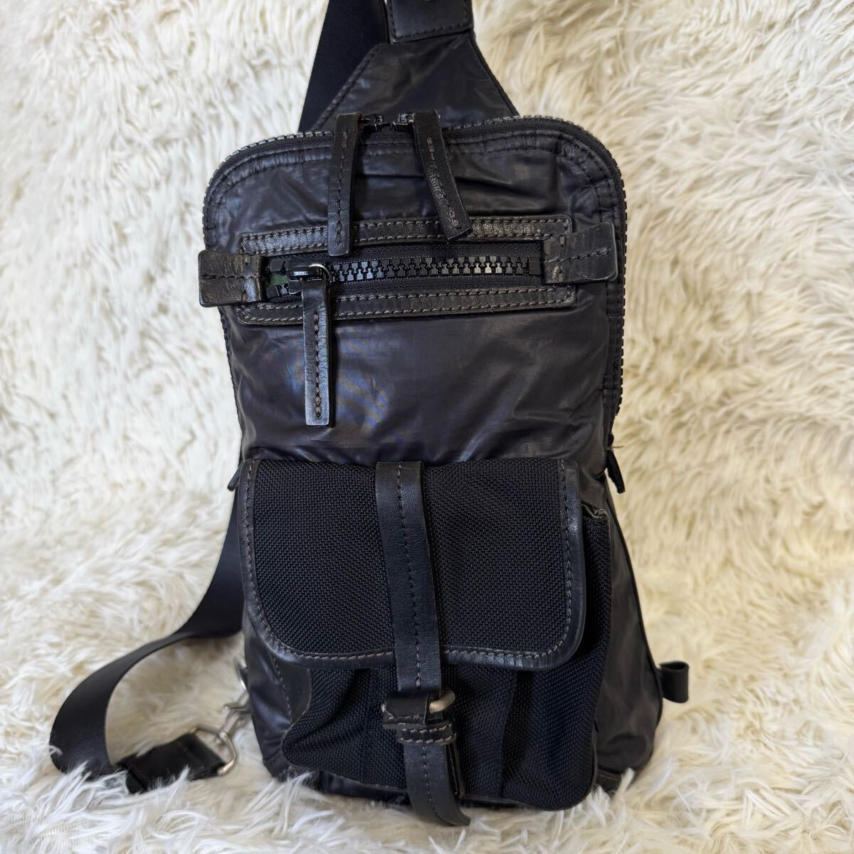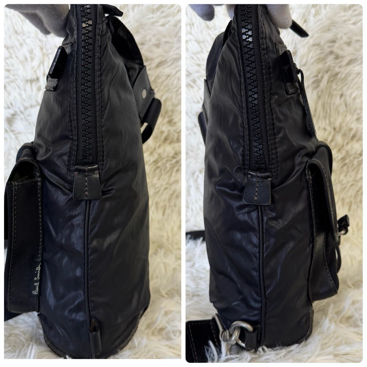 ポールスミス PaulSmith ボディバッグ 軽量 黒 レザー&ナイロン(ポーターのタンカーのようなナイロン生地です)
